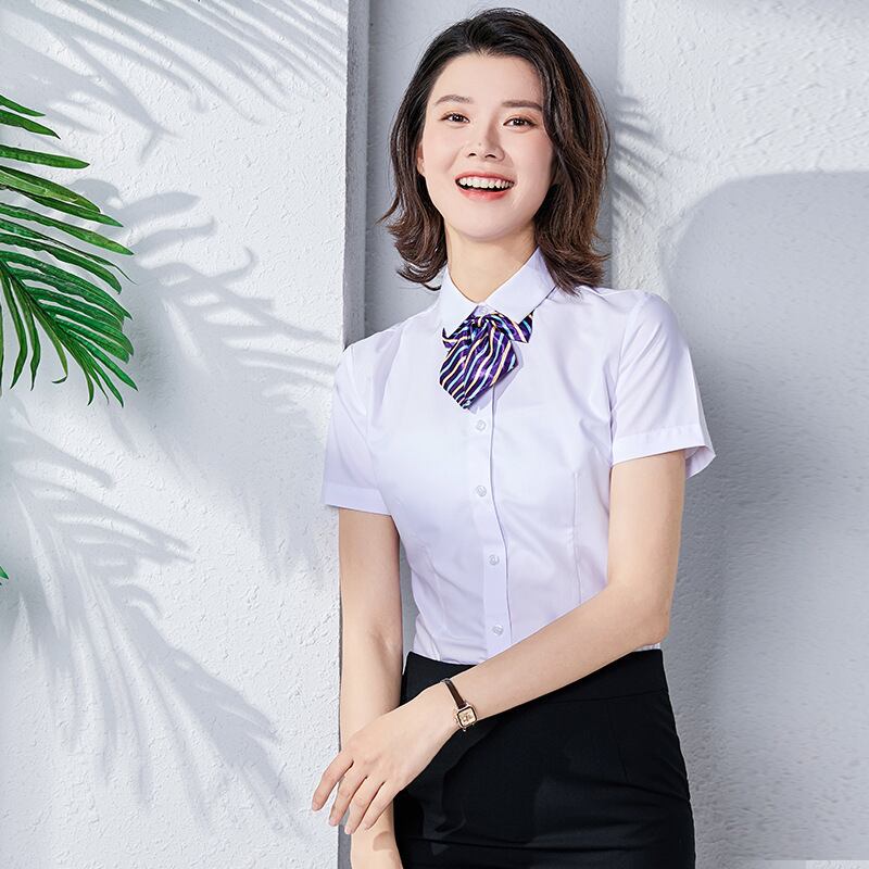 【新作】【送料無料】 2020年の新しい白いシャツの女性の半袖サマートップススタイルのスリムフィットインチシャツプロのマルウェアオーバーオールシャツ春-アリババ ホワイト スプリング 春物 夏物 12b341840011232
