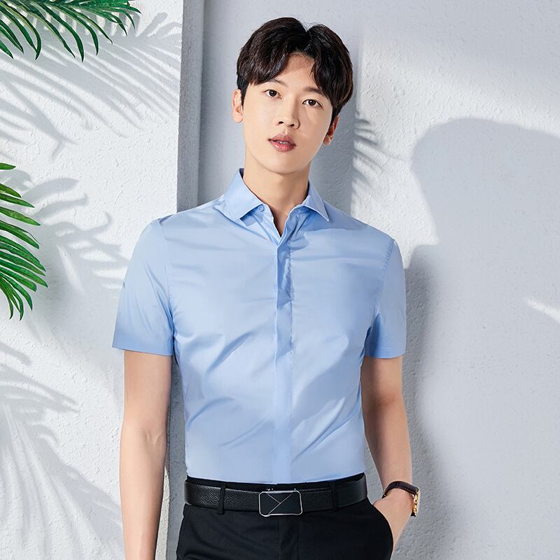 【新作】【送料無料】 半袖シャツメンズビジネスカジュアルノンアイアンサマーニュールーズビジネスウェアメンズスクエアカラーホワイトシャツ薄シャツ-アリババ 夏物 スクウェア 12b379521649612