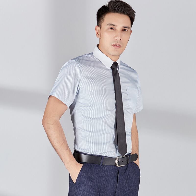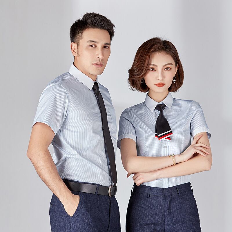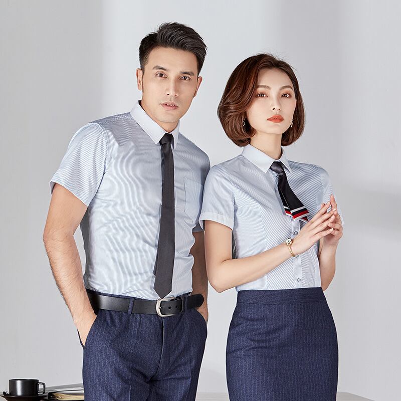 【新作】【送料無料】 ブルーストライプの半袖シャツ薄い2020年夏の新しい男性と女性が同じ気質のホワイトカラーの面接プロのオーバーオール-アリババ サマー 夏物 12b359954680461