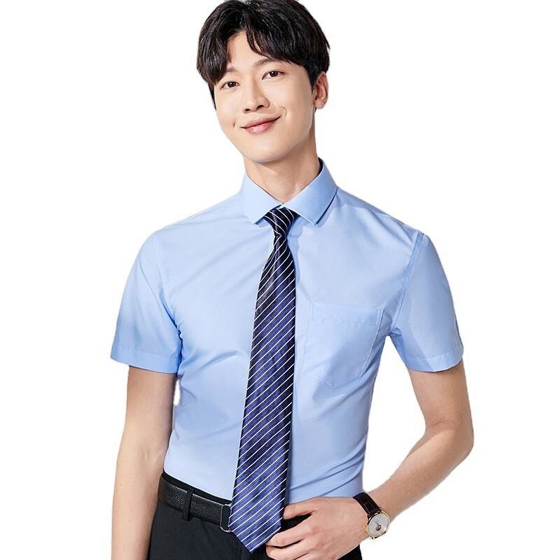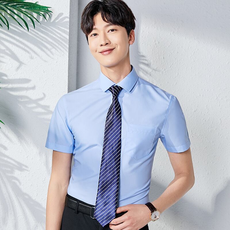 【新作】【送料無料】 ブルーシャツメンズ半袖ノンアイアンスリムフィットアンチリンクルビジネスワークオーバーオールインチサマープロマルウェアメンズシャツ-アリババ 夏物 12b326664208353