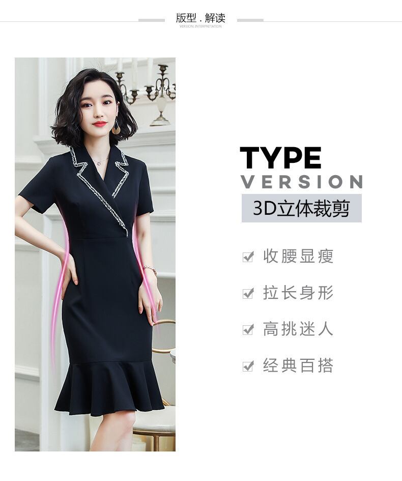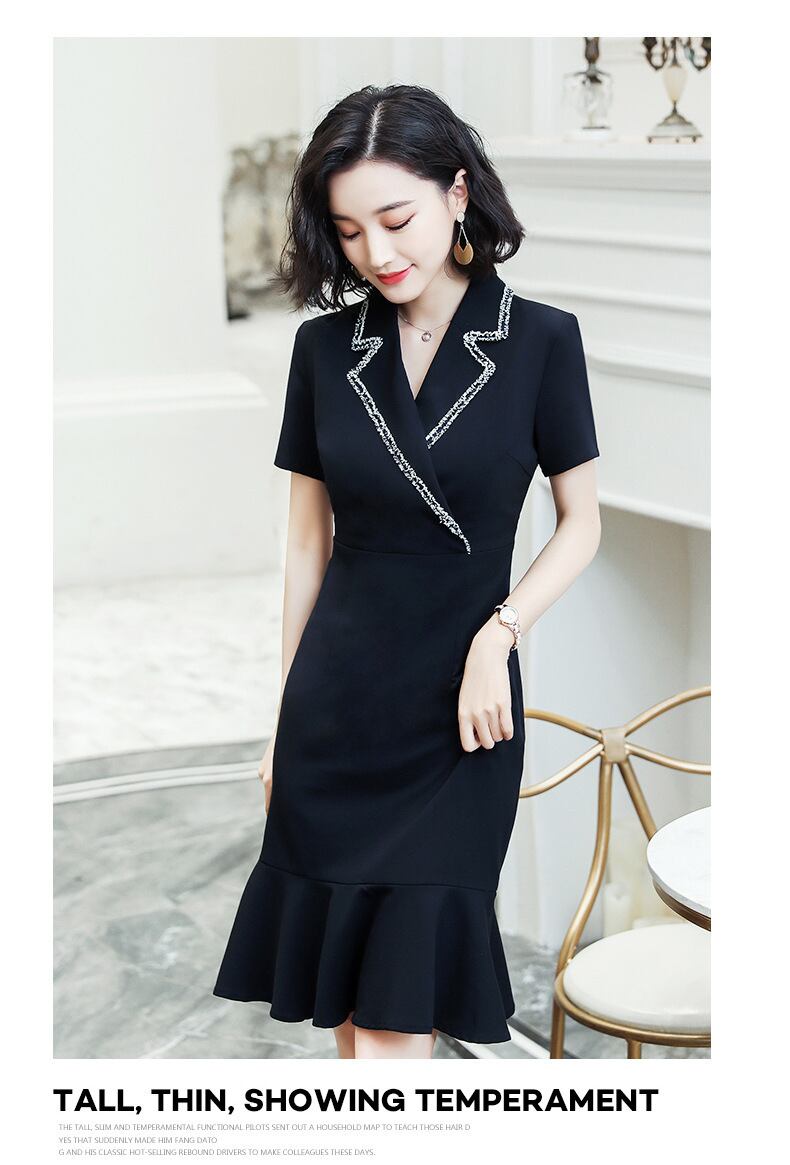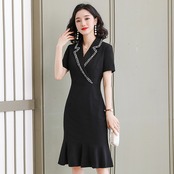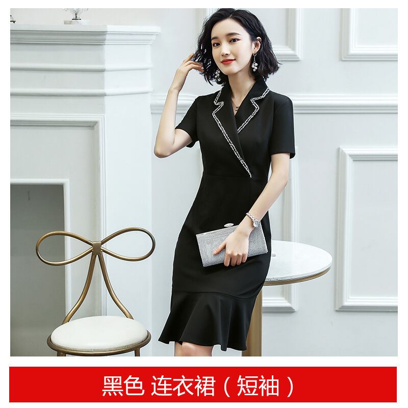 【新作】【送料無料】 黒の半袖ヒップフリルスカート2020夏の新しい通勤ミドル丈ワークウェアフィッシュテールドレス-アリババ ブラック サマー 夏物 12b312519104065