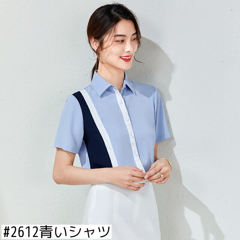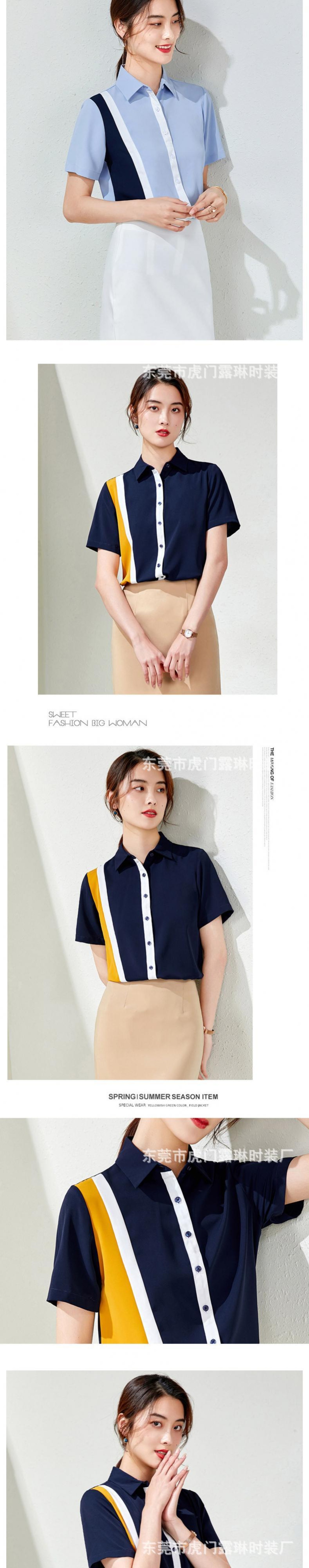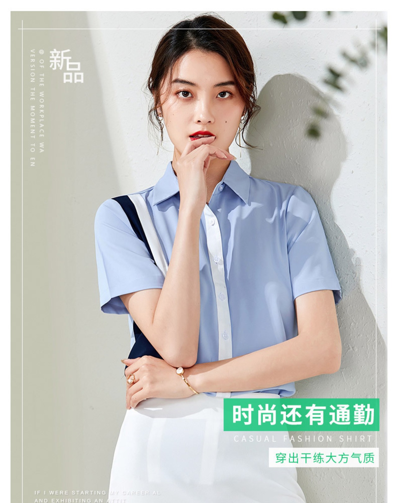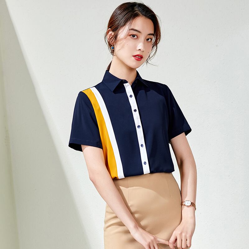 【新作】【送料無料】 対照的なカラーステッチ半袖シャツ2020夏の新しい女性のプロのファッション対応スリムシャツスタイルトップ-アリババ サマー 夏物 12b359967506000