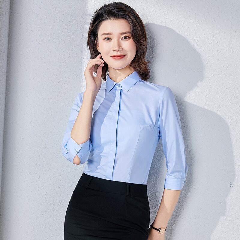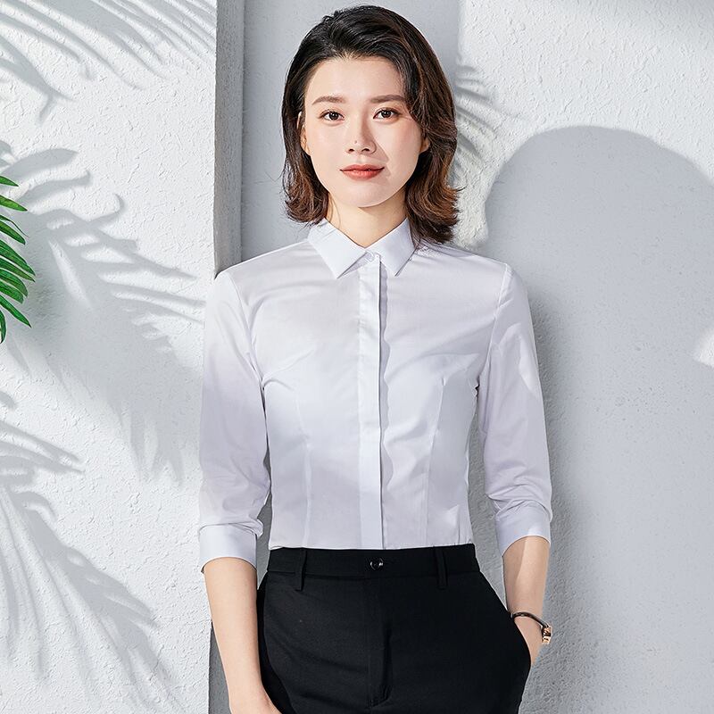 【新作】【送料無料】 2020年夏の新しい白いミドルスリーブシャツレディースラペルシングルブレストプロのホワイトカラー銀行インタビューオーバーオール-アリババ サマー 夏物 12b310738114437