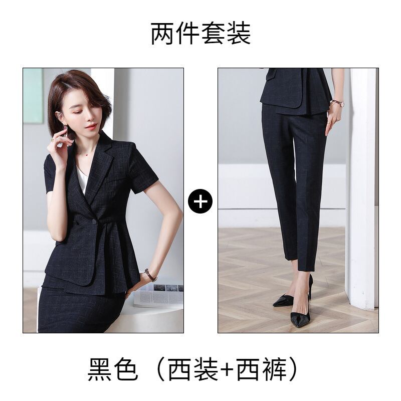 【新作】【送料無料】 2020年夏の新しいプロの美容院フロントデスク半袖スリムスーツ、9ポイントパンツツーピーススーツ女性シン-アリババ サマー 夏物 12b31952665900