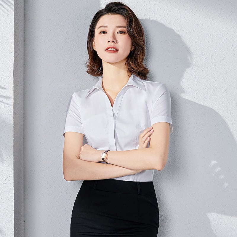 【新作】【送料無料】 2020年夏の新しい女性の半袖スリムフィットラペルシングルブレストビジネスコミューターシャツプロのホワイトカラーオーバーオール-アリババ サマー 夏物 12b365784791362