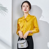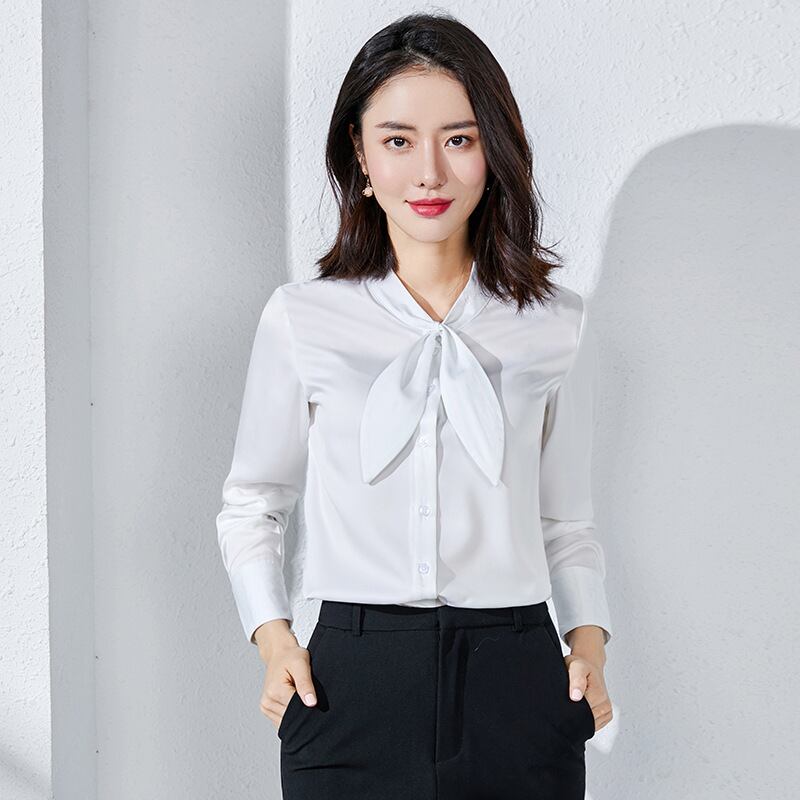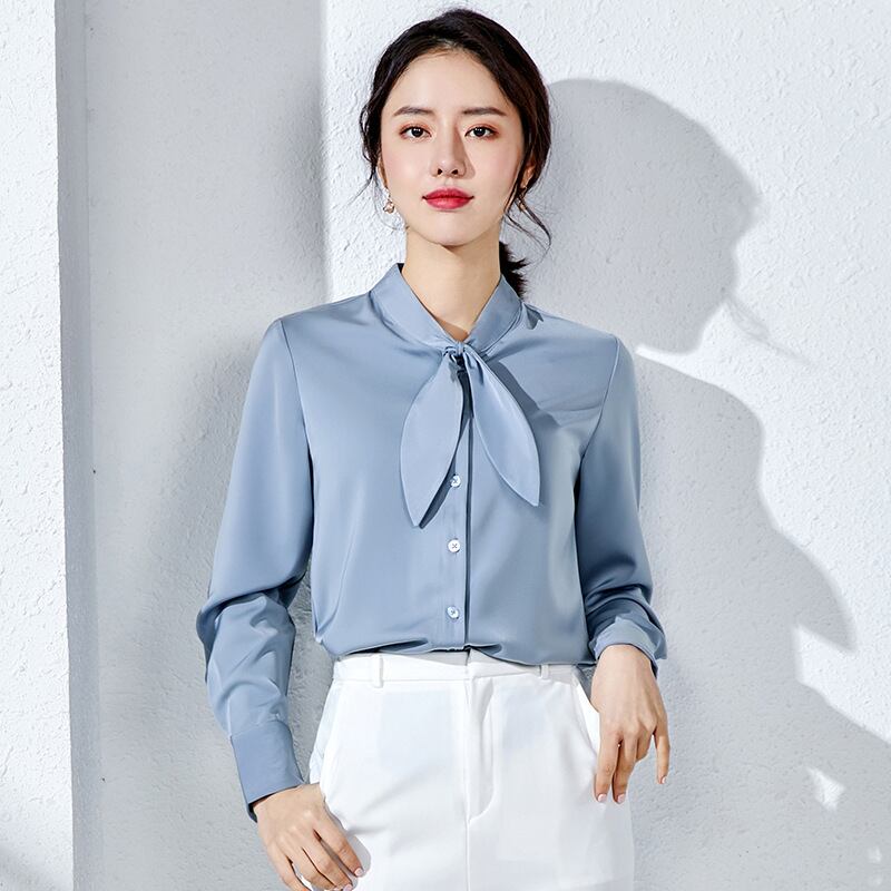 【新作】【送料無料】 シルクサテン長袖シャツ、ライトクックドトップ、デザインセンスニッチエインスタイルプロフェッショナルスタンドアップカラーシャツ2020夏の新しいスタイル-アリババ ロング サマー 夏物 12b365888346980