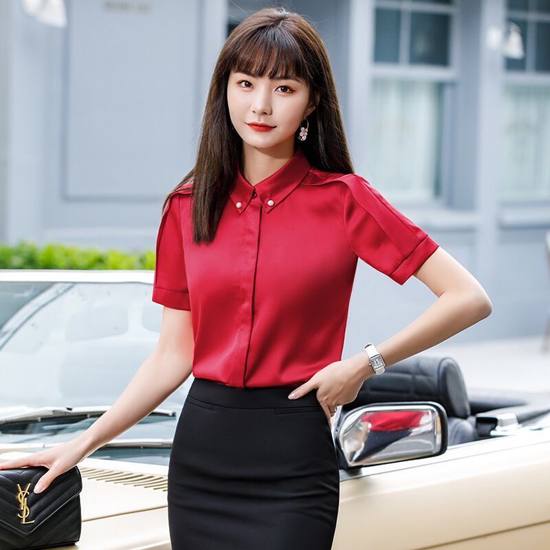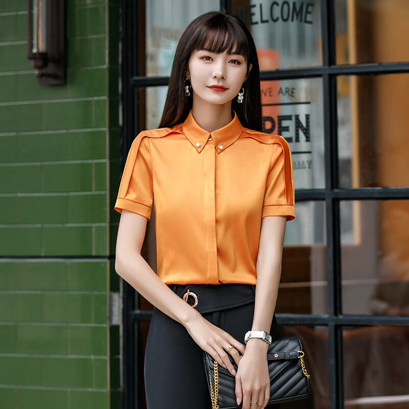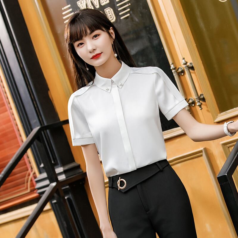【新作】【送料無料】 ホワイトシャツ女性デザインセンスニッチ2020夏新作無地半袖プロOLシャツサテンシャツ女性-アリババ サマー 夏物 ソリッドカラー 12b3410014303