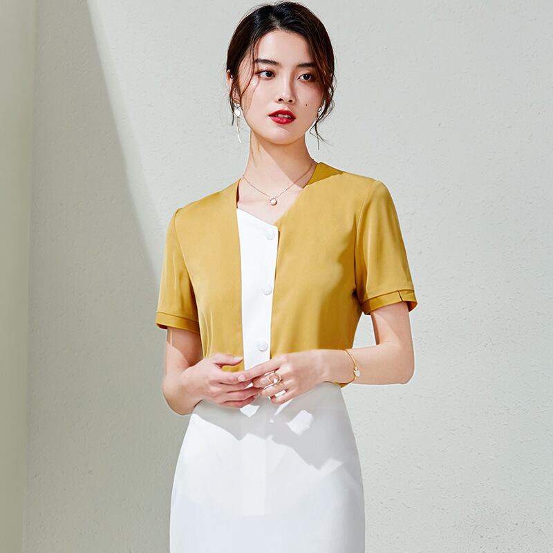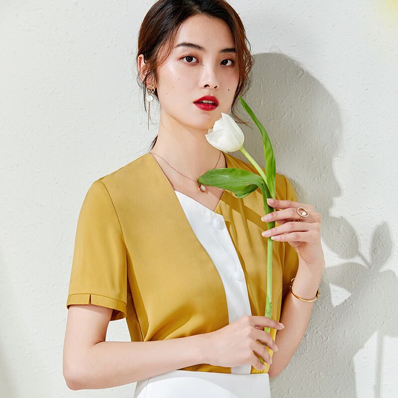 【新作】【送料無料】 プロのシャツの女性の半袖2020年夏の新しいファッションスタイルのVネックネクタイ白いシャツルーズウエスタンスタイルのトップ-アリババ ホワイト サマー 夏物 12b31346866437