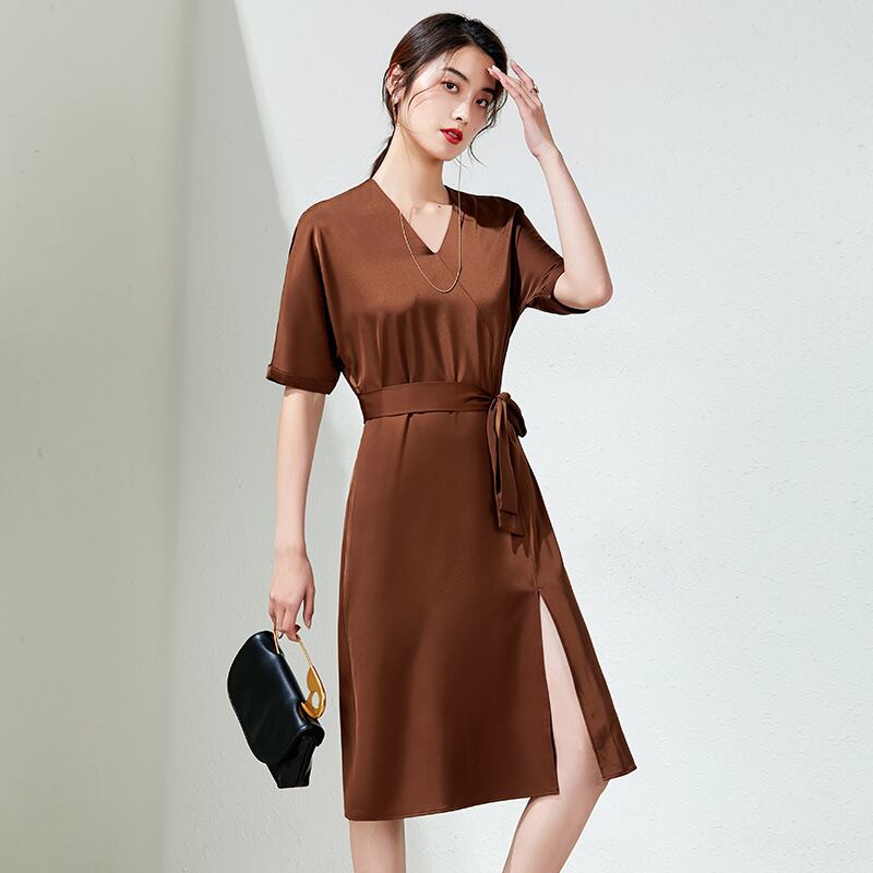【新作】【送料無料】 2020年夏の新しいスタイルのドレスウエスト気質ファッション女性の女神ファンチョンロングレースアップミッドスリーブ女性のスカート-アリババ サマー 夏物 12b381622512920