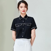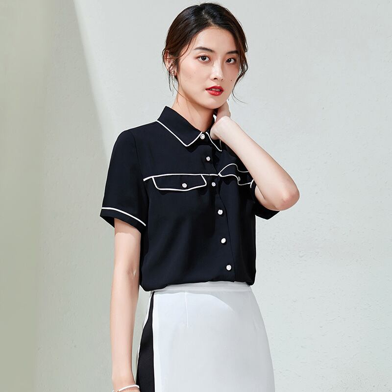 【新作】【送料無料】 2020年夏の新しい女性の作業服の女神ファンカジュアルな黒の半袖シャツ大学生トップ-アリババ ブラック サマー 夏物 12b318139608581