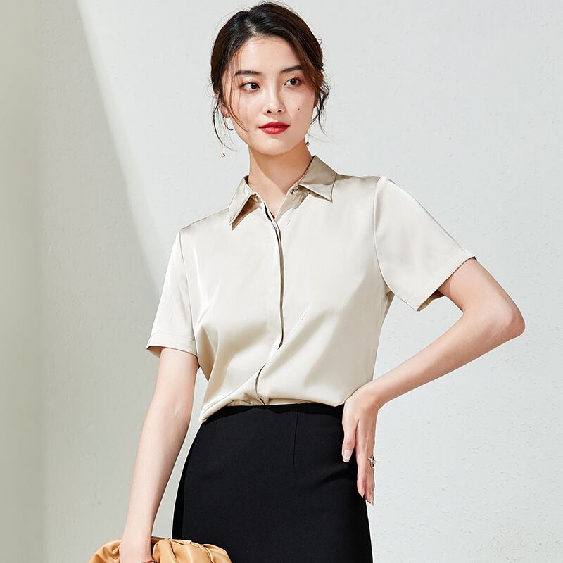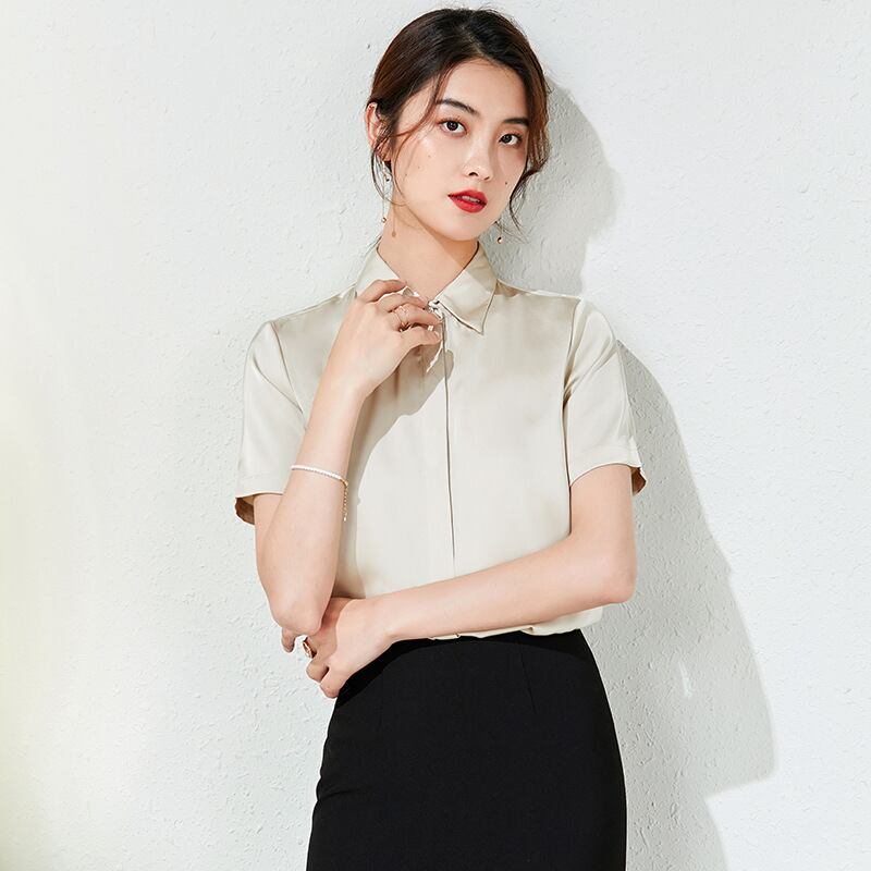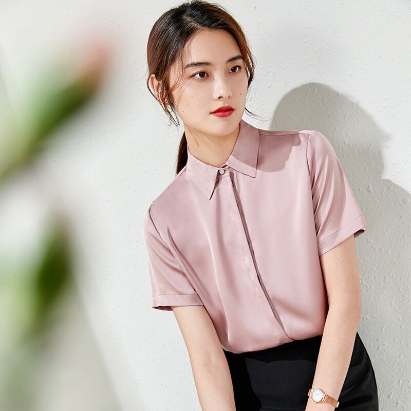 【新作】【送料無料】 アプリコット半袖シャツ2020春と夏の新しい婦人服スリムシングルブレスト通勤ビジネスプロフェッショナルトップ-アリババ スプリング 春物 サマー 夏物 12b369098116342