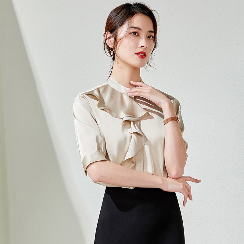 【新作】【送料無料】 フリルステッチミドルスリーブシャツ2020夏の新しい女性の宮殿スタイルの女神ファンプロのシャツ薄い-アリババ レース サマー 夏物 12b36257613389