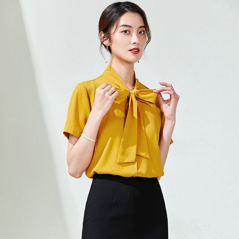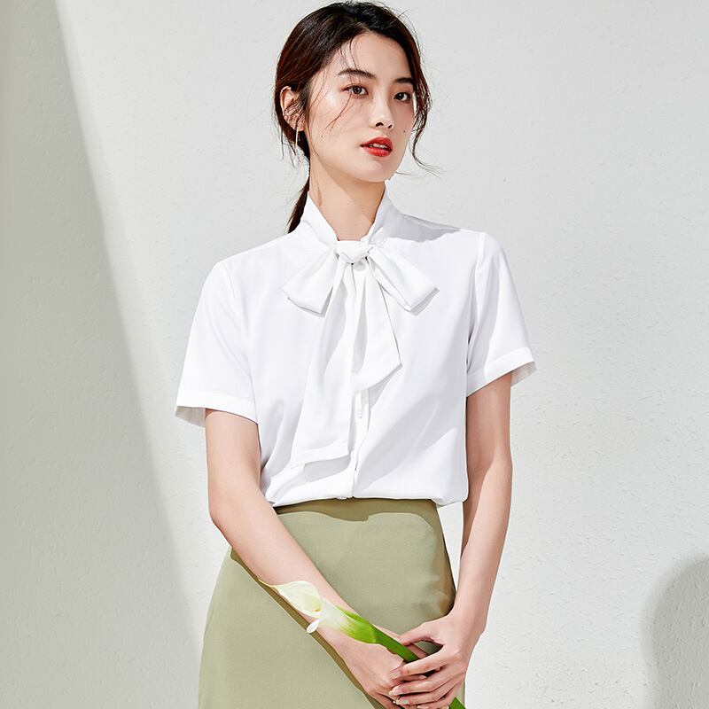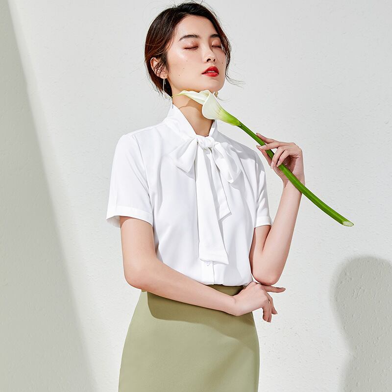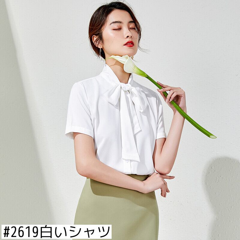 【新作】【送料無料】 シフォンシャツ女性夏半袖ファッション気質ウエスタンスタイル蝶ネクタイ白いシャツ女性バージョンの腹シャツ-アリババ ホワイト リボン サマー 夏物 12b399600263585