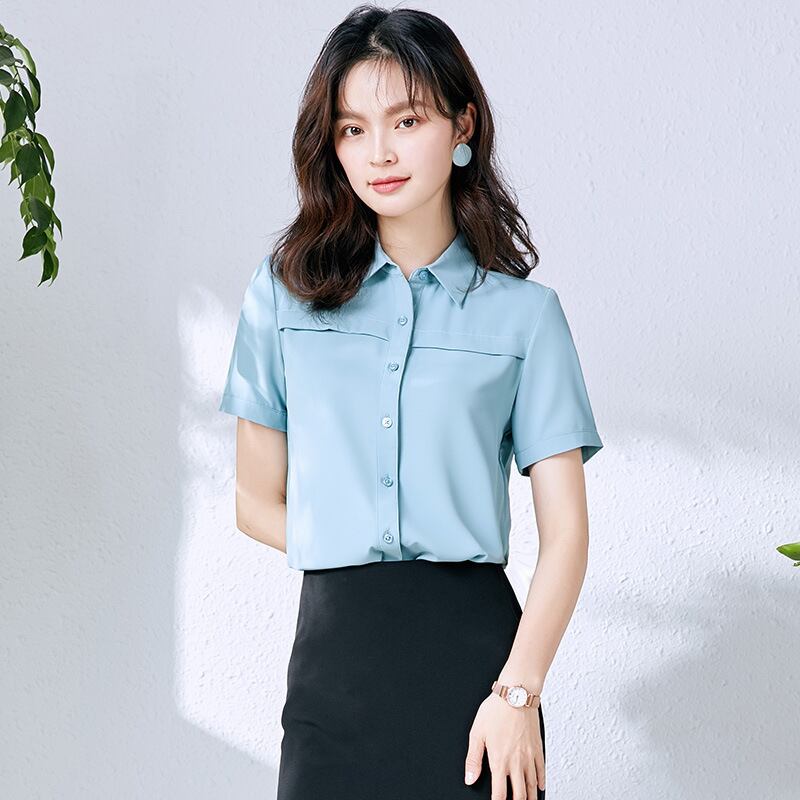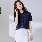 【新作】【送料無料】 2020年夏の新作ラペルシャツ半袖シフォンシャツ女性デザインセンスニッチオーバーオールボトミングシャツ-アリババ ショート ハーフスリーブ サマー 夏物 12b374682834400
