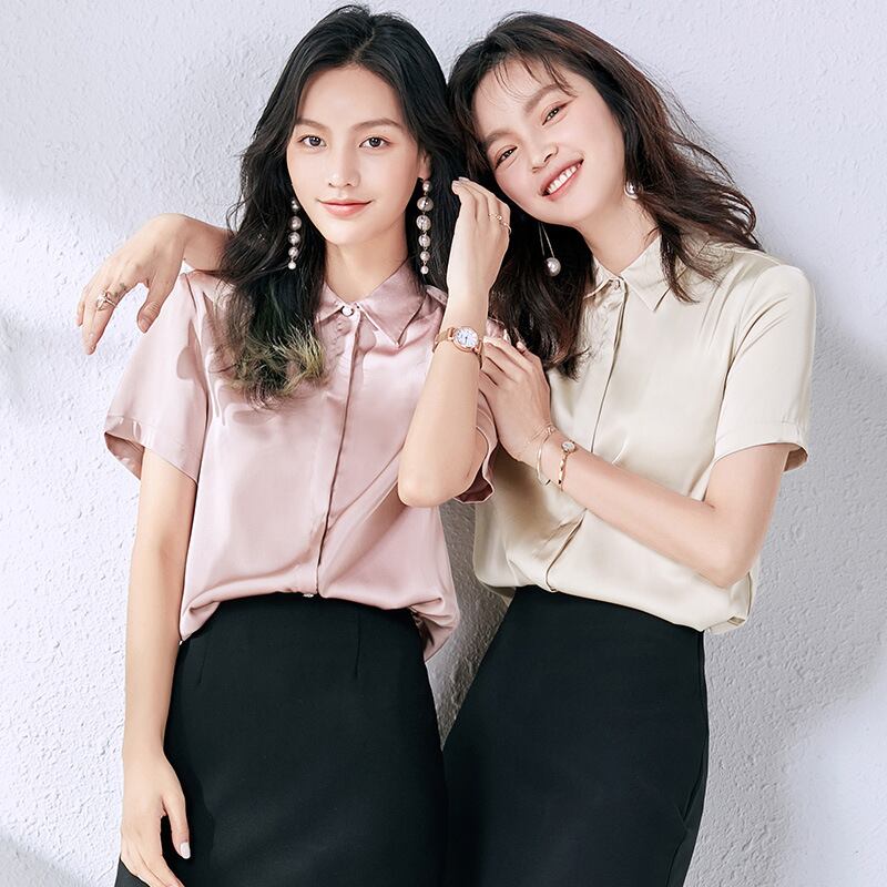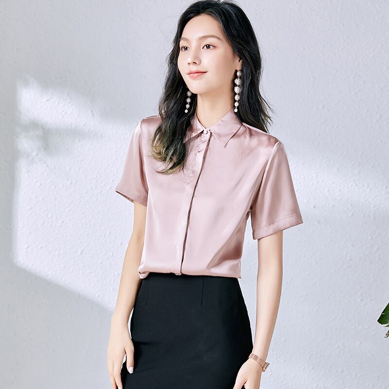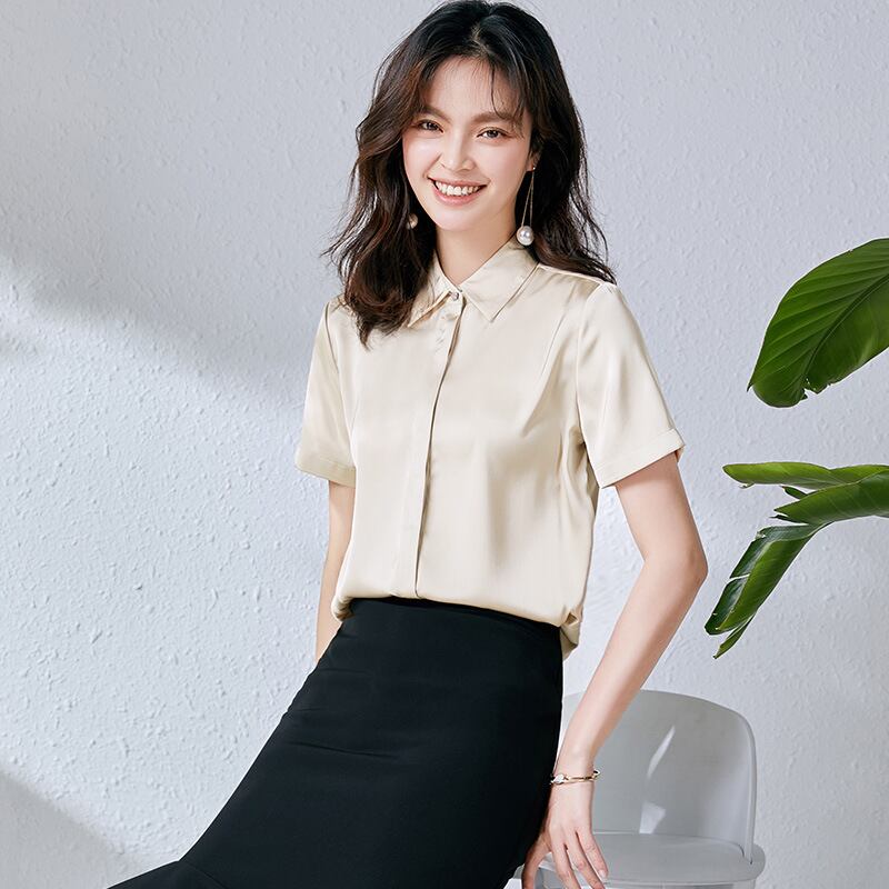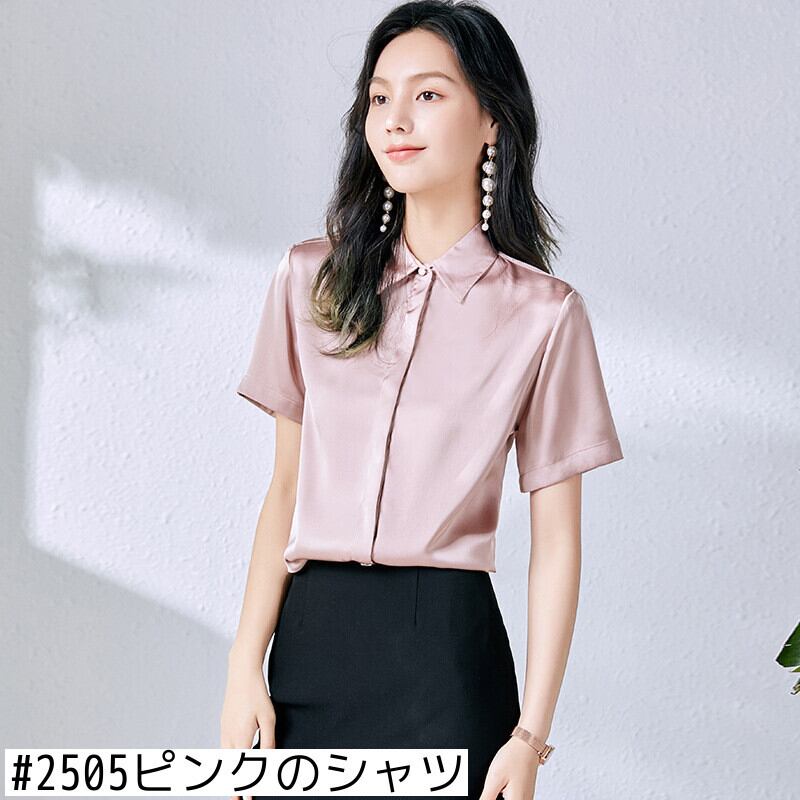 【新作】【送料無料】 シフォンシャツ女性夏半袖薄ブラウスサテンドレープ気質ファッションeignスタイル塩ベースのビジネスウェアシャツ-アリババ サマー 夏物 12b376172258308