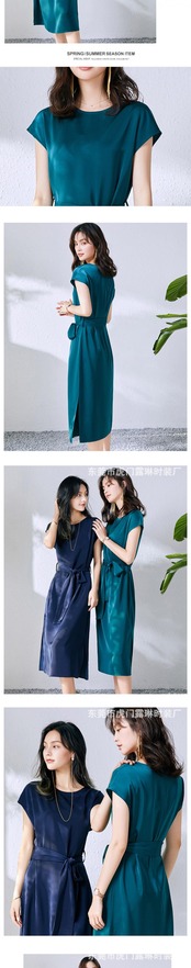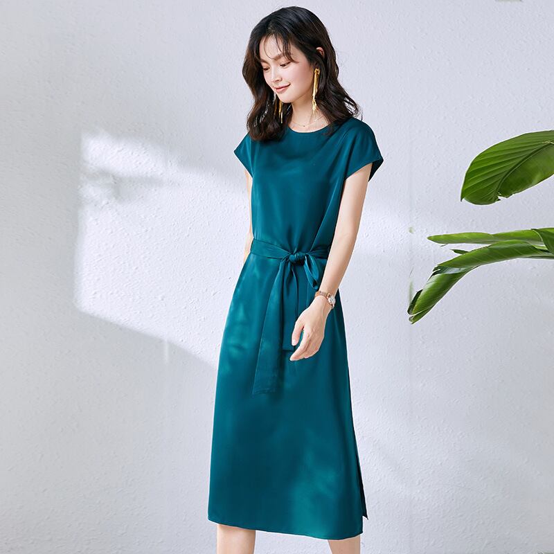【新作】【送料無料】 テクスチャード半袖ドレス2020夏の新しい女性のシンプルな女神Fanzhongロングコミューターロングスカート-アリババ レッド サマー 夏物 12b35916901538