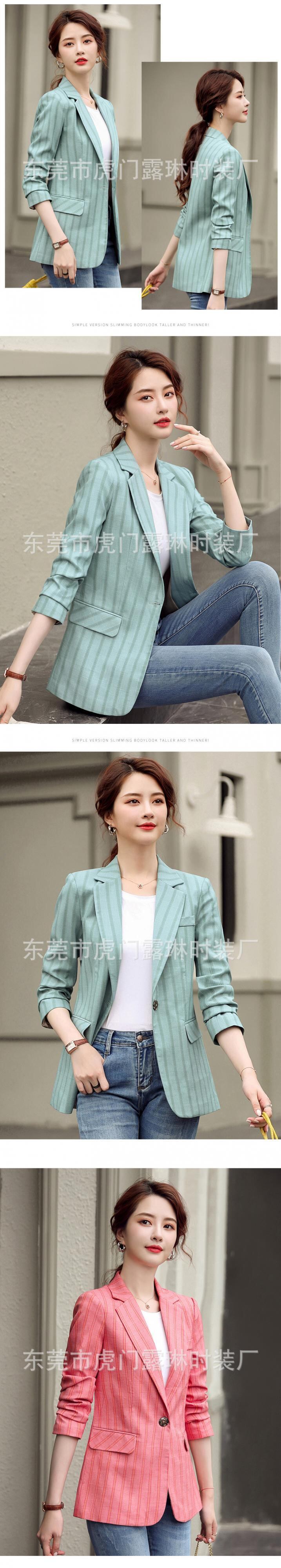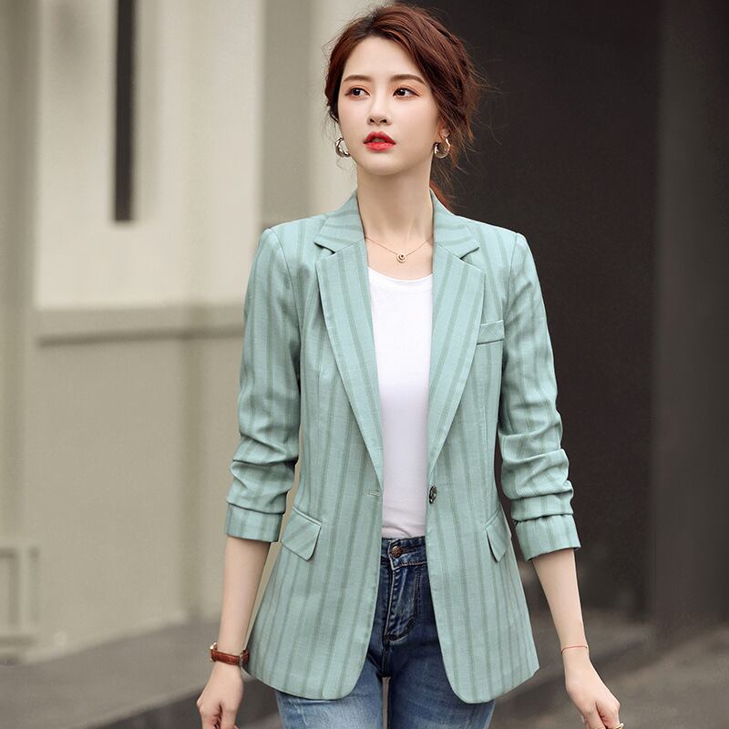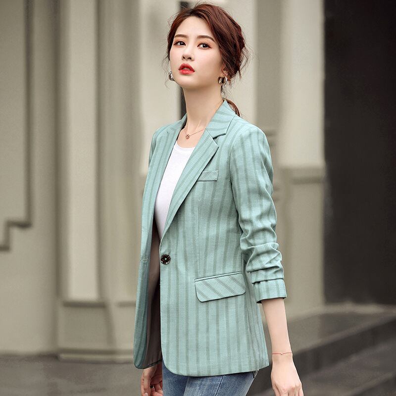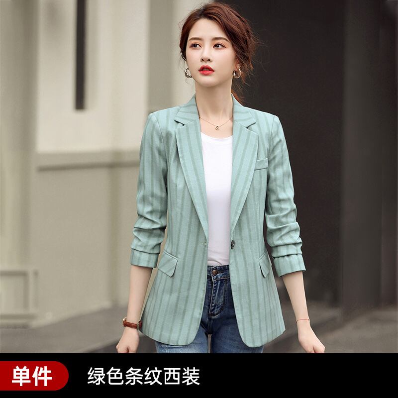【新作】【送料無料】 2020年秋のニューエイジを減らすウエスタンスタイルのグリーンロングスーツレディースヘップバーンストライプ長袖プロジャケット-アリババ オータム 秋物 12b391440707694
