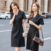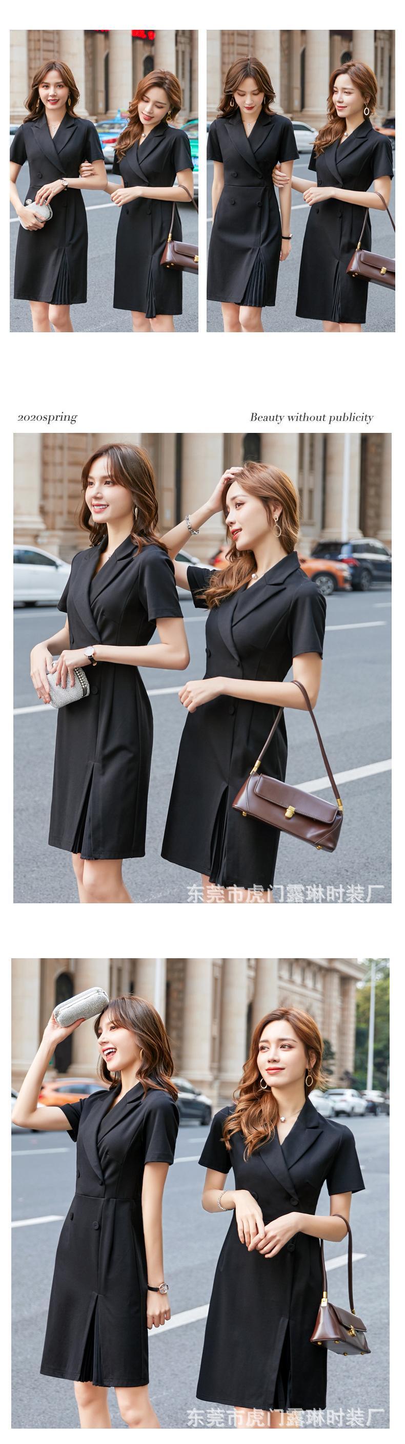 【新作】【送料無料】 プロのスーツカラーミドル丈ドレス2020夏の新しい女性のヘップバーンリトルブラックドレスプリーツAラインスカート-アリババ サマー 夏物 12b391146039149