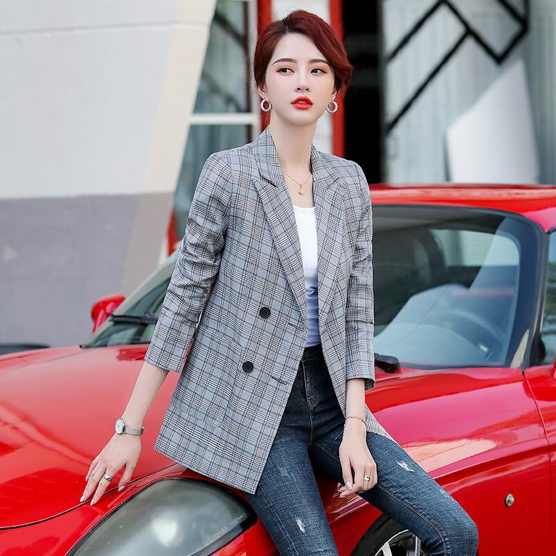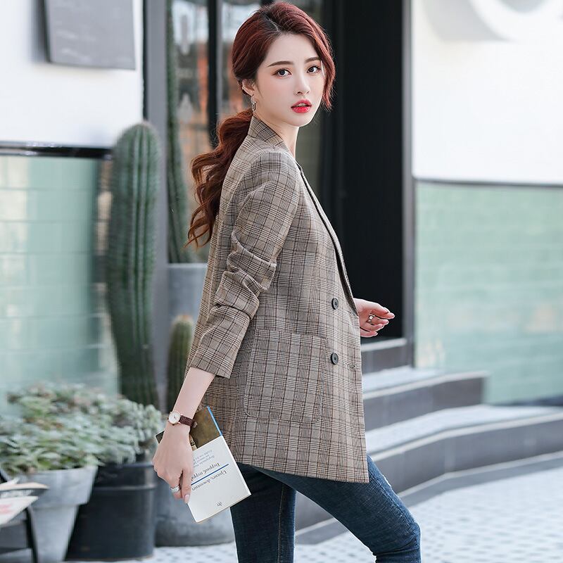 【新作】【送料無料】 千鳥格子チェックロングスモールスーツ2020秋新作レディースプロ気質レトロスタイルスーツジャケット-アリババ オータム 秋物 12b316903353540