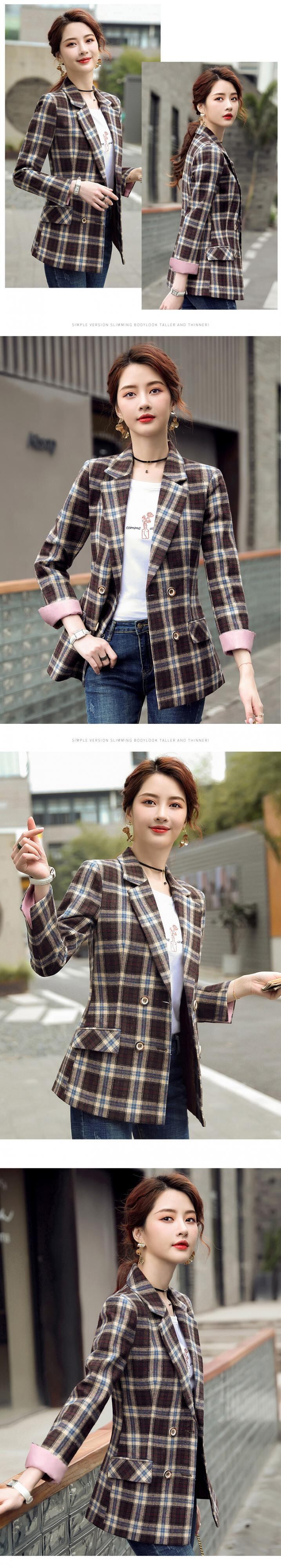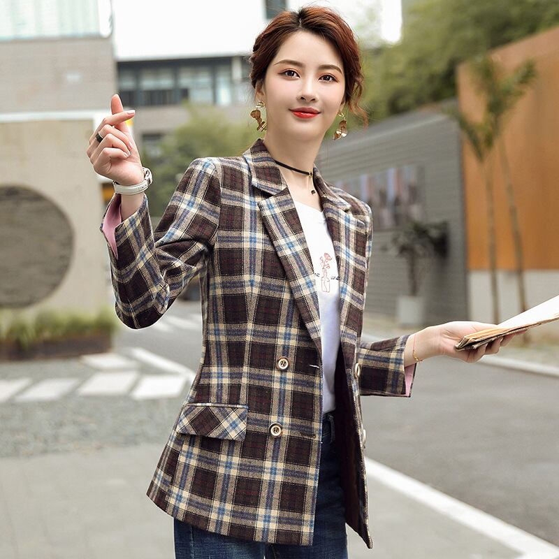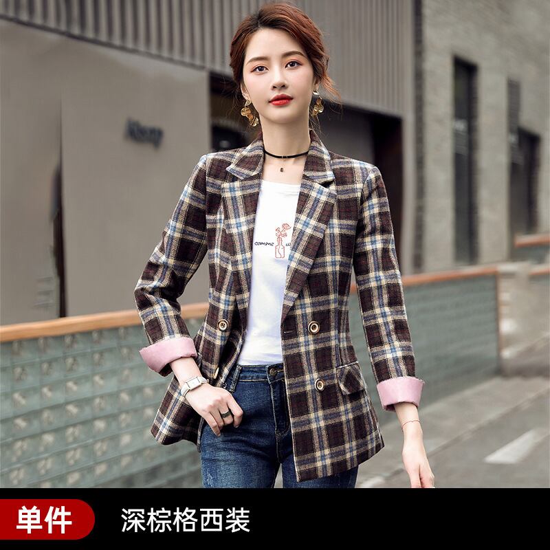 【新作】【送料無料】 2020年秋の新しい茶色の格子縞のスーツの女性の西洋スタイルは薄く見える、小さなフレグランススタイルのネットセレブプロの小さなスーツ-アリババ オータム 秋物 12b313848368624