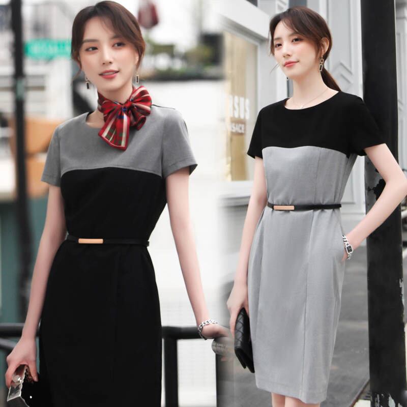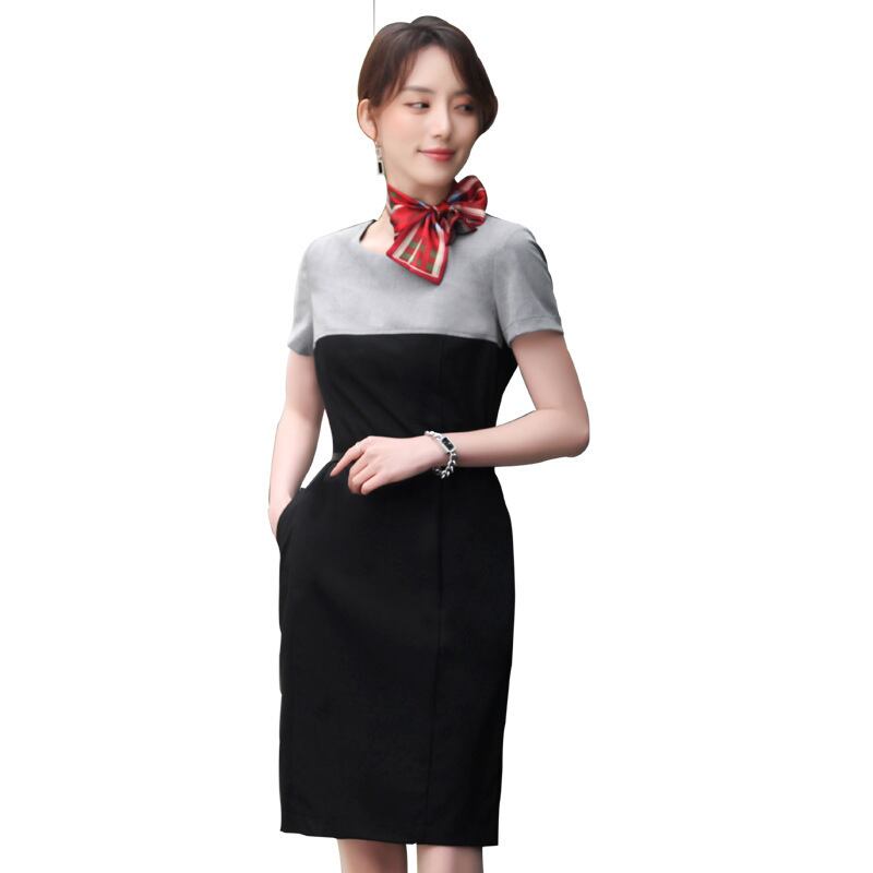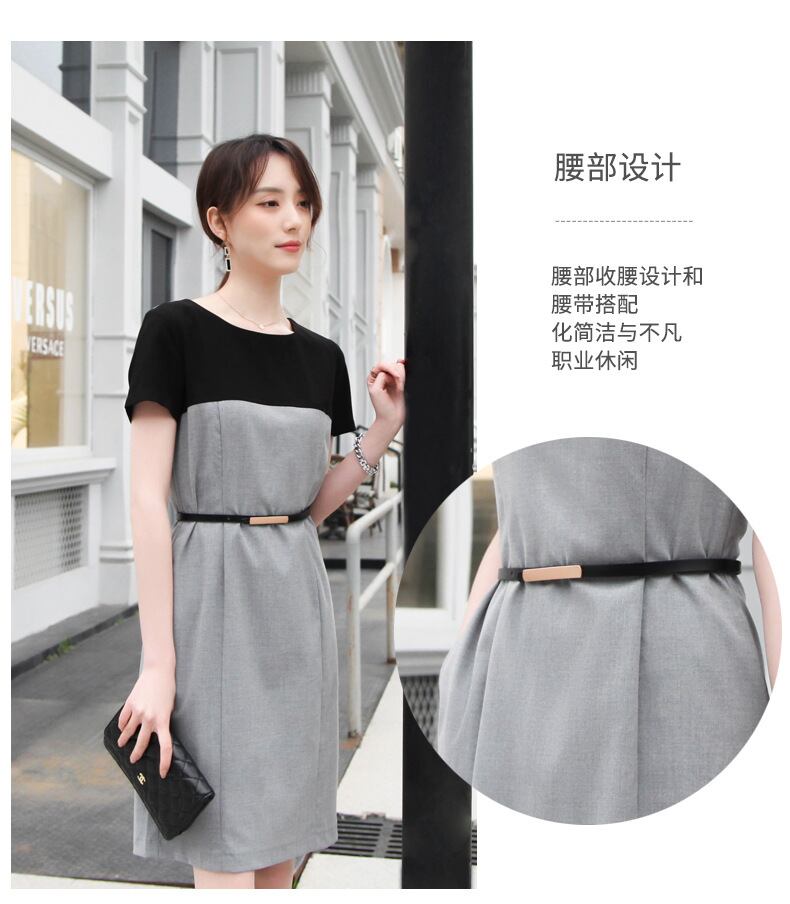 【新作】【送料無料】 グレーのドレス女性の夏のウエストウエストは薄いプロのエルフロントデスクビューティーサロン作業服コントラスト半袖スカート-アリババ サマー 夏物 12b394244486781