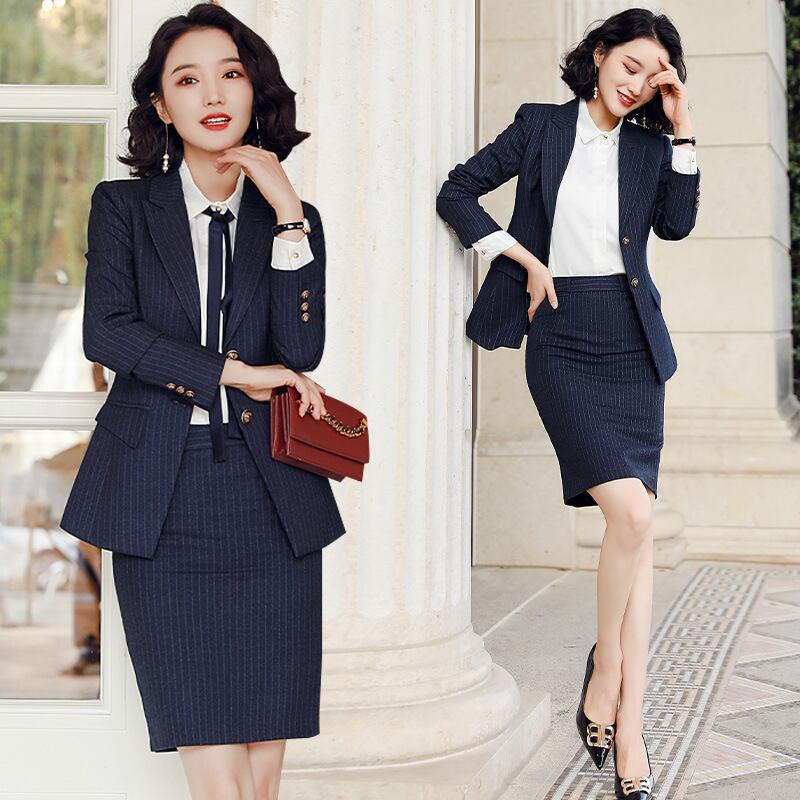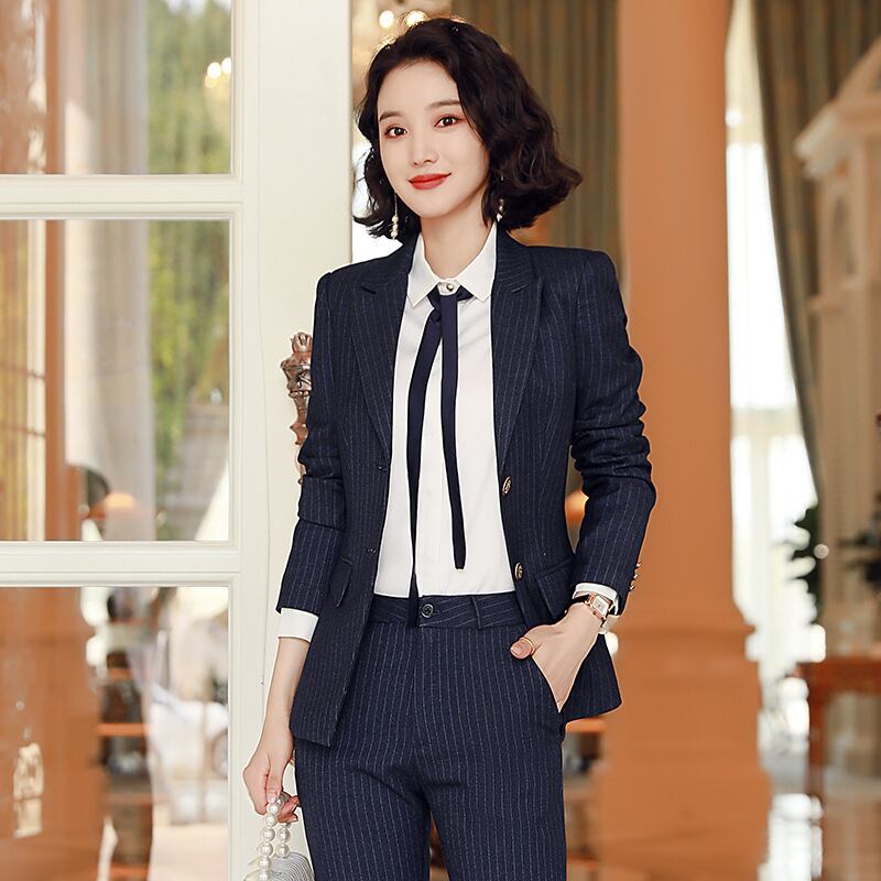 【新作】【送料無料】 ストライプスーツスーツ、女性社長、レディース、ヘアリーセンス、温かみのあるプロのウェア、英国スタイル、ホワイトカラーのオーバーオールマネージャー-アリババ 12b363794325417
