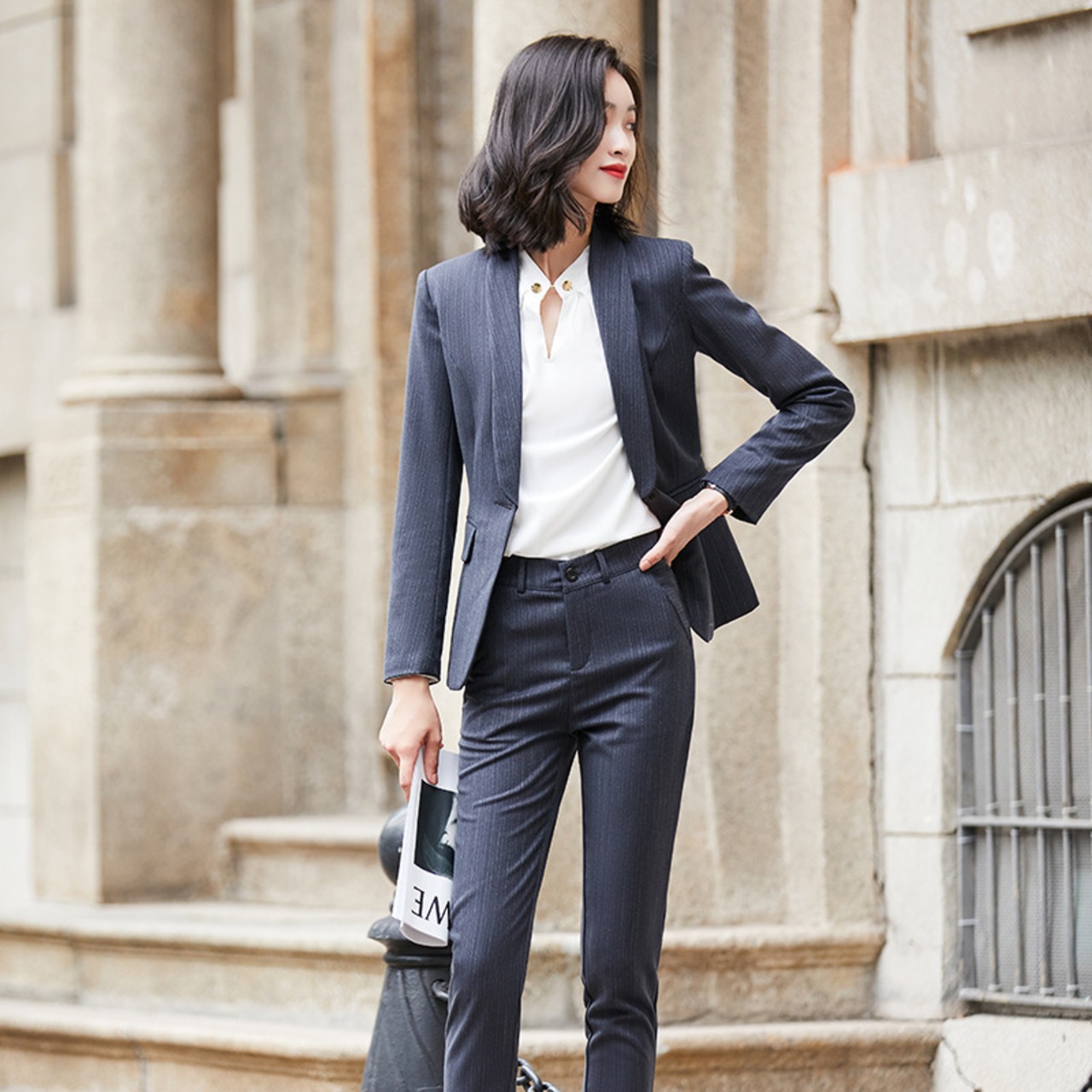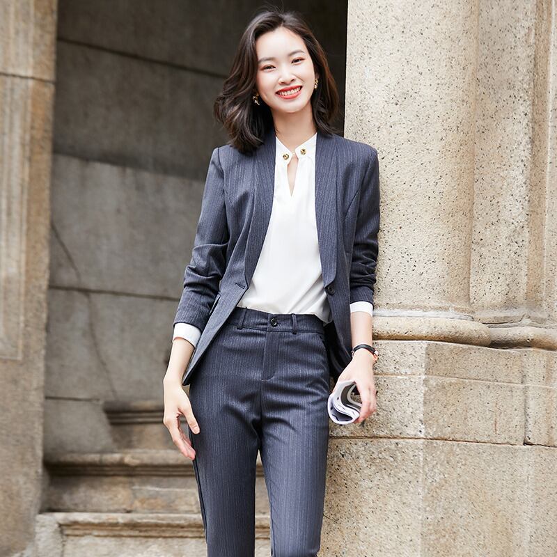 【新作】【送料無料】 スーツジャケットストライプスモールスーツパンツレディース2020秋冬新ファッションプロフェッショナルツーピーススーツ-アリババ オータム 秋物 ウィンター 冬物 12b38535168479