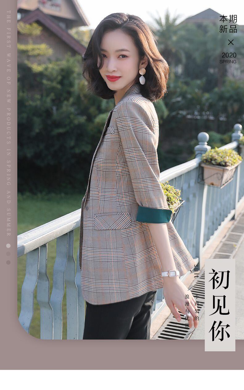 【新作】【送料無料】 ジャケット女性春コーヒーグリッドファッションスタイルスモールスーツファッション長袖トップ気質カジュアルスーツ作業服-アリババ ロング スプリング 春物 12b352200751019
