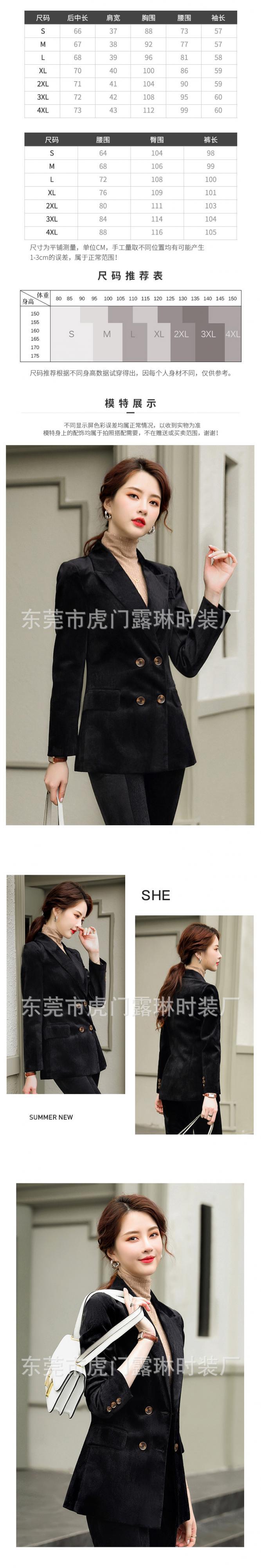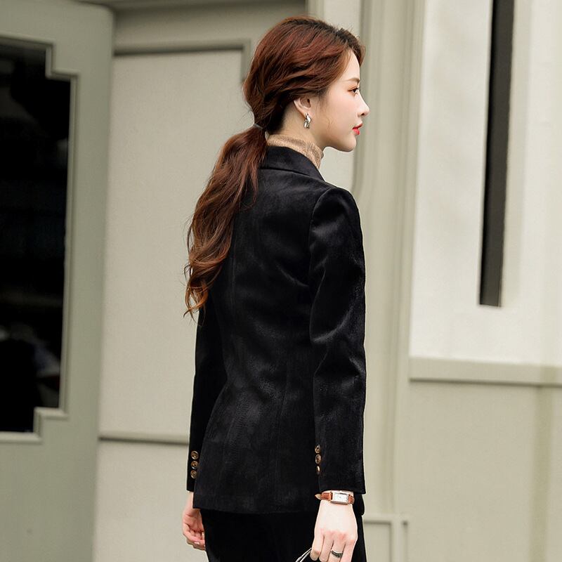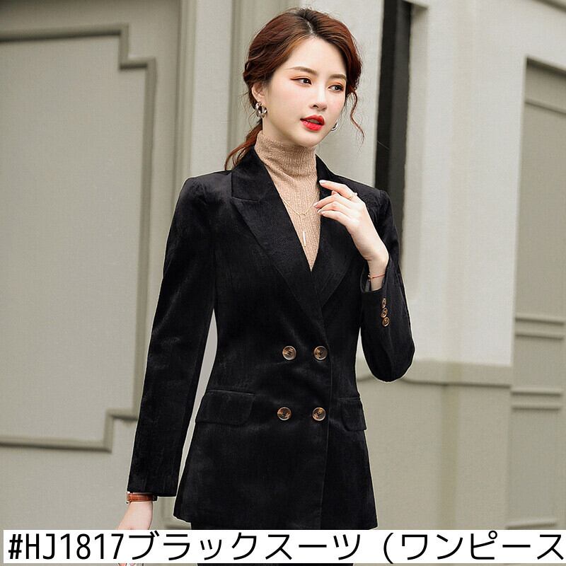 【新作】【送料無料】 2020年秋の新しいプロの黒長袖ジャケットスーツパンツツーピーススーツ女性デザインセンススーツ-アリババ ロング ブラック オータム 秋物 12b340990734679