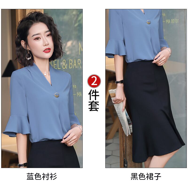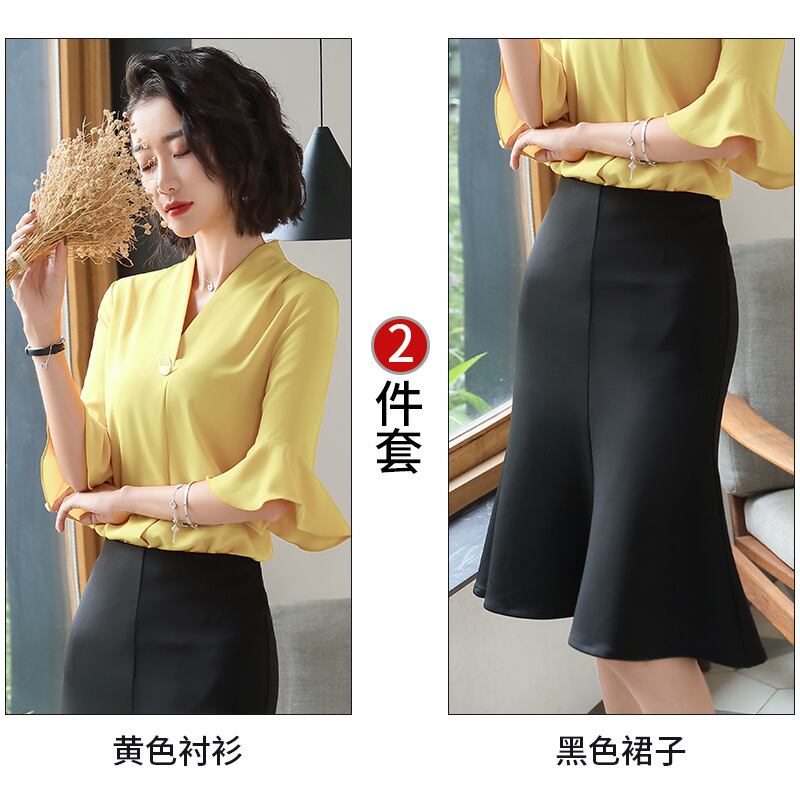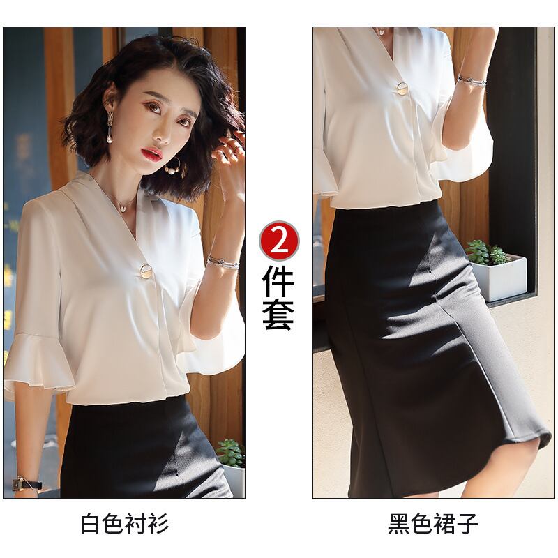 【新作】【送料無料】 Vネックプルオーバーシフォンシャツ2020春と夏の新しい女性の薄いトランペットスリーブプロのeign気質スリムブラウス-アリババ スプリング 春物 サマー 夏物 12b328387809055