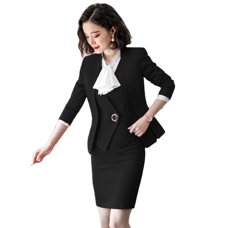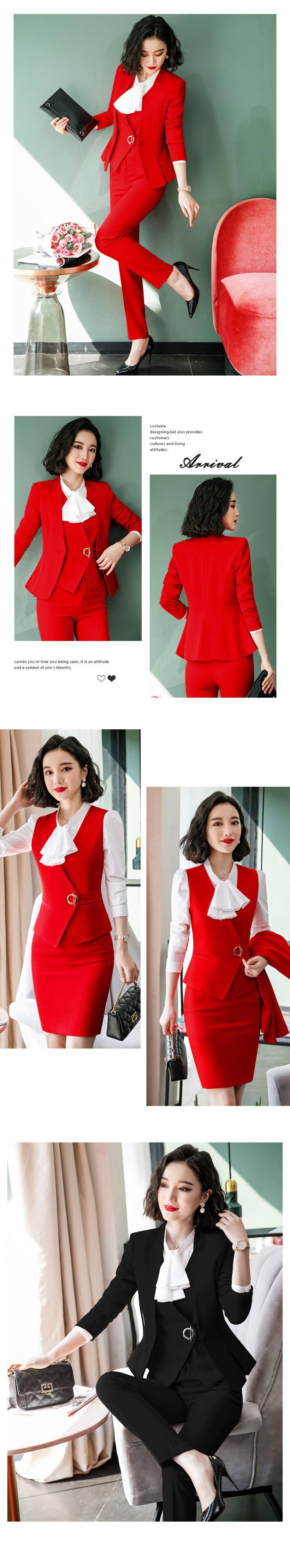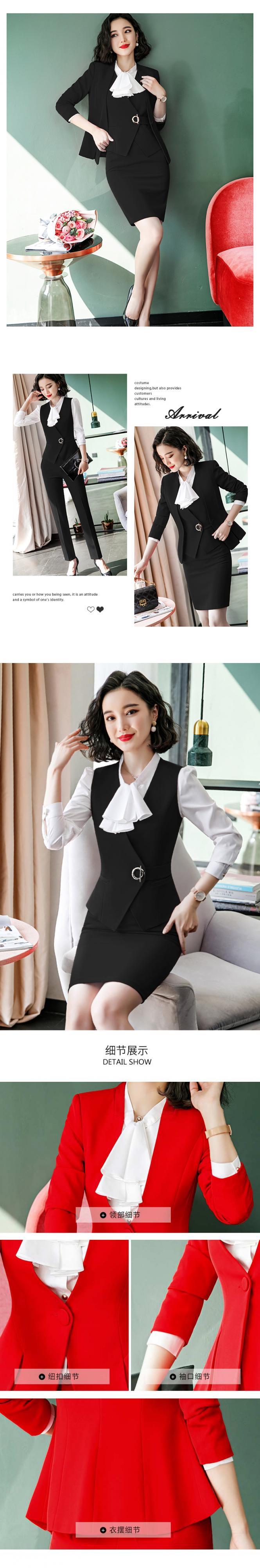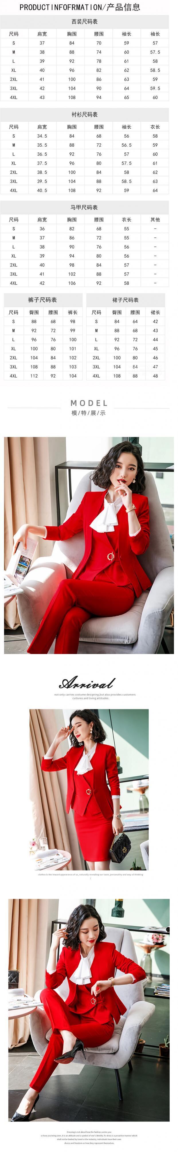 【新作】【送料無料】 赤いスーツスーツ女性の長袖プロウェアマルウェア2020新しい気質の女神ファンフロントデスク作業服-アリババ ロング レッド 12b391668142513