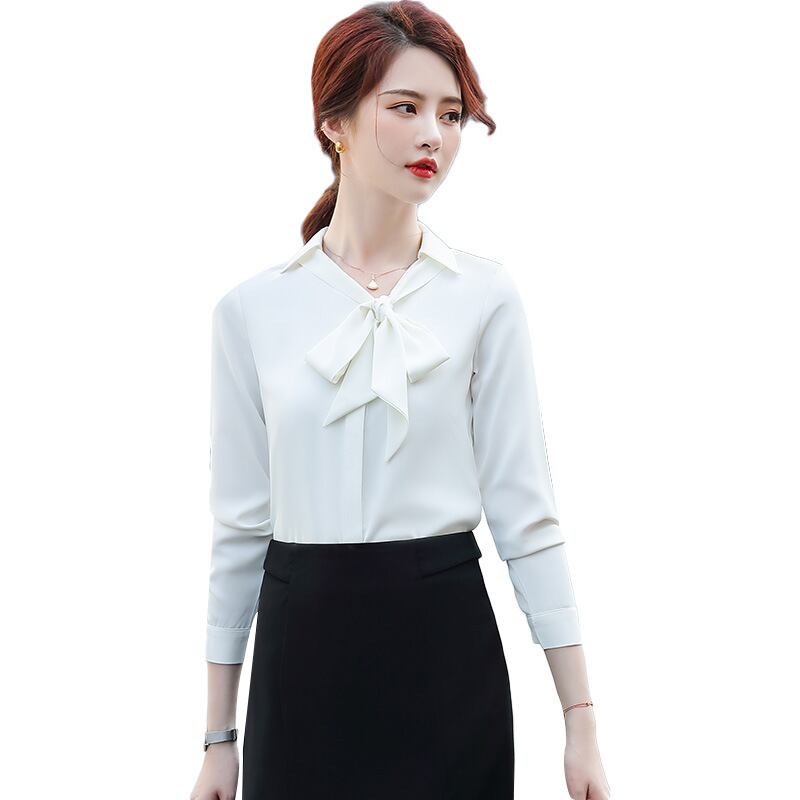 【新作】【送料無料】 2020年秋の新しい白いストリーマーシフォン長袖シャツ、黒のプロのウエスタンパンツツーピーススーツの女性-アリババ ロング ホワイト ブラック オータム 秋物 12b349882715168