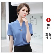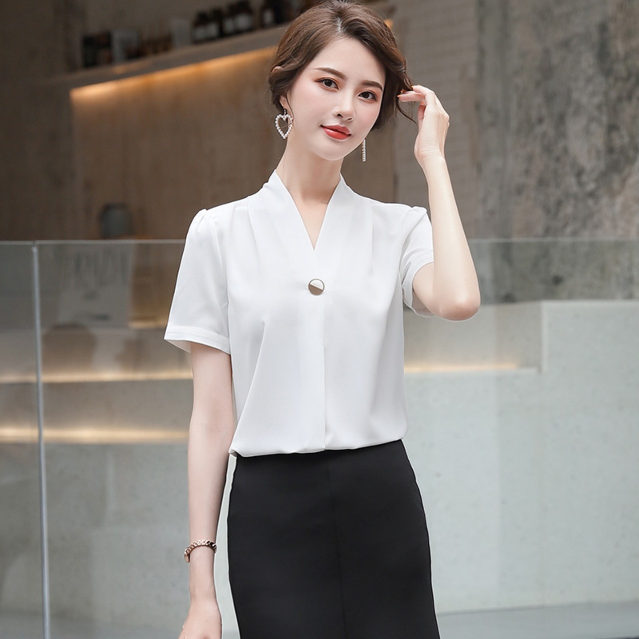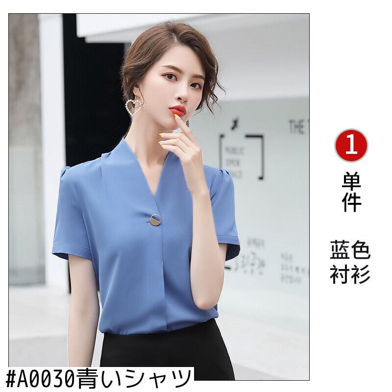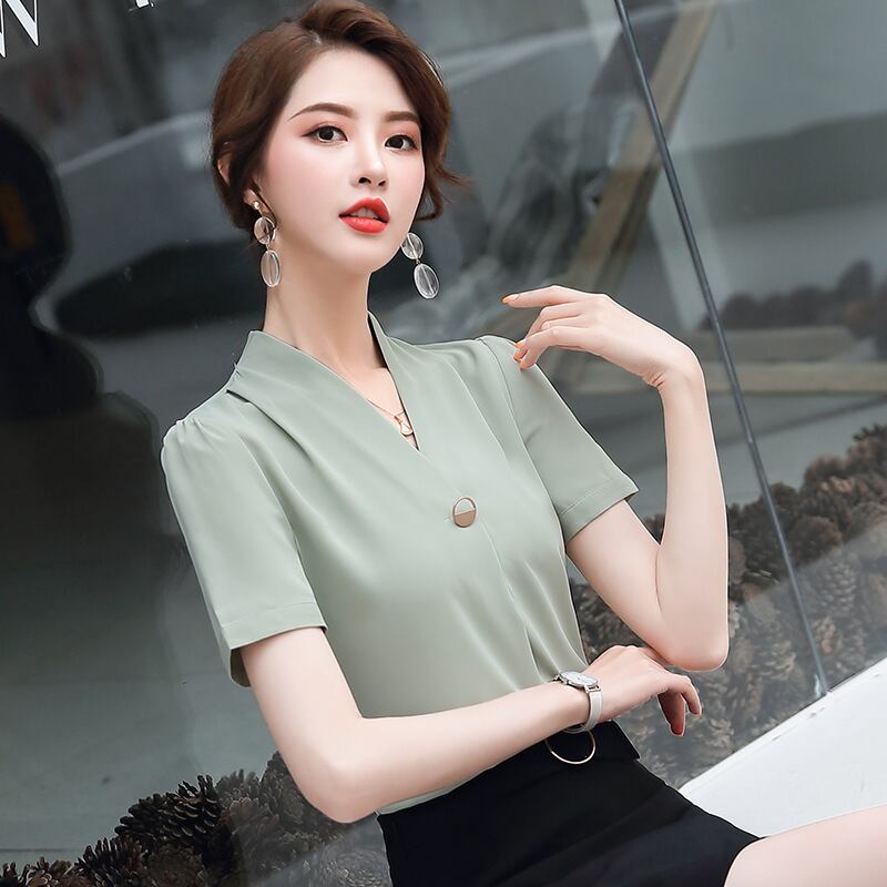 【新作】【送料無料】 プロの気質Vネックシャツ2020春と夏の新しい女性のシフォン半袖プルオーバーレディースシャツスリミングトップ-アリババ スプリング 春物 サマー 夏物 12b324021267568