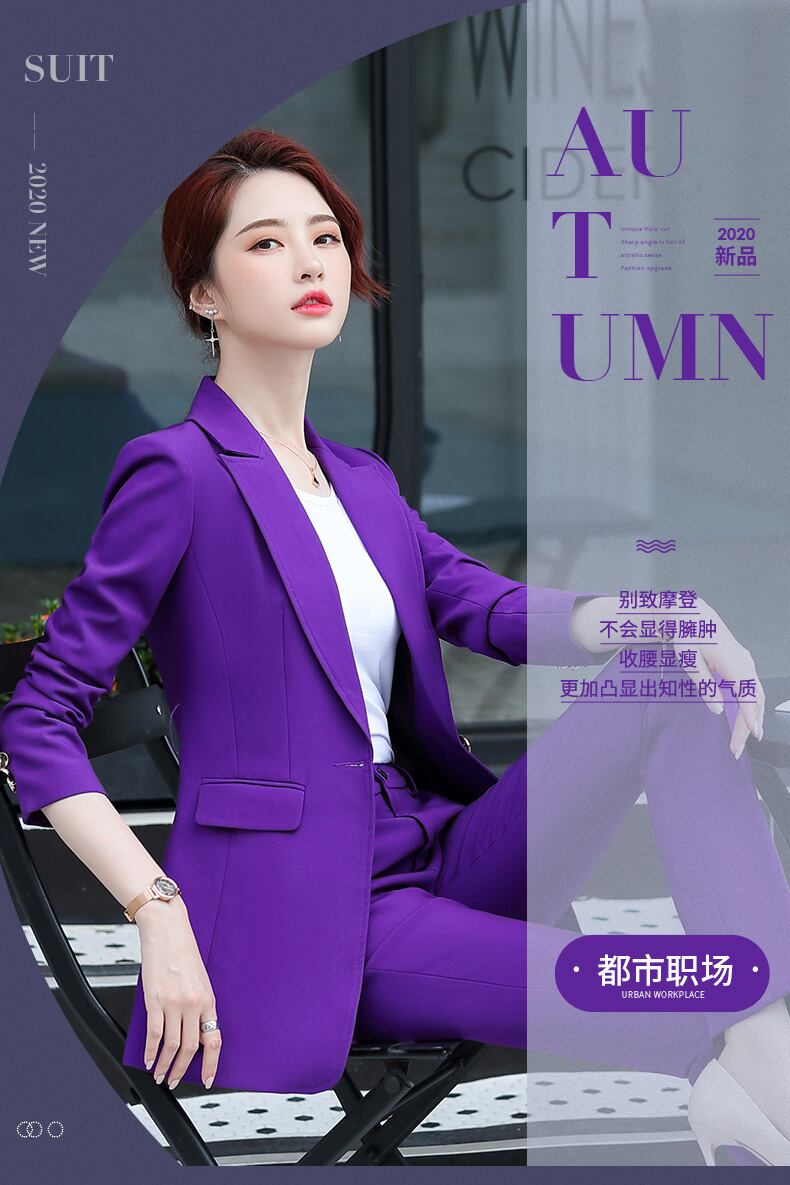 【新作】【送料無料】 2020年秋新しいコミューターパープルビジネススーツスーツ気質スリムスーツパンツツーピーススーツ女性-アリババ オータム 秋物 12b394217583079