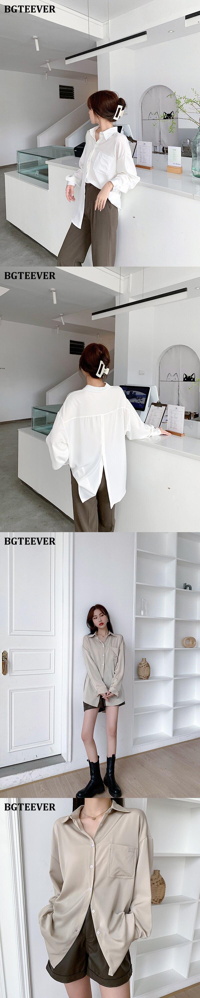 【新作】【送料無料】 BGTEEVERスプリングターンダウンカラーオーバーサイズソリッドシャツレディースシングルブレストポケットブラウストップス2021 春物 ソリッドカラー 12b179012053206
