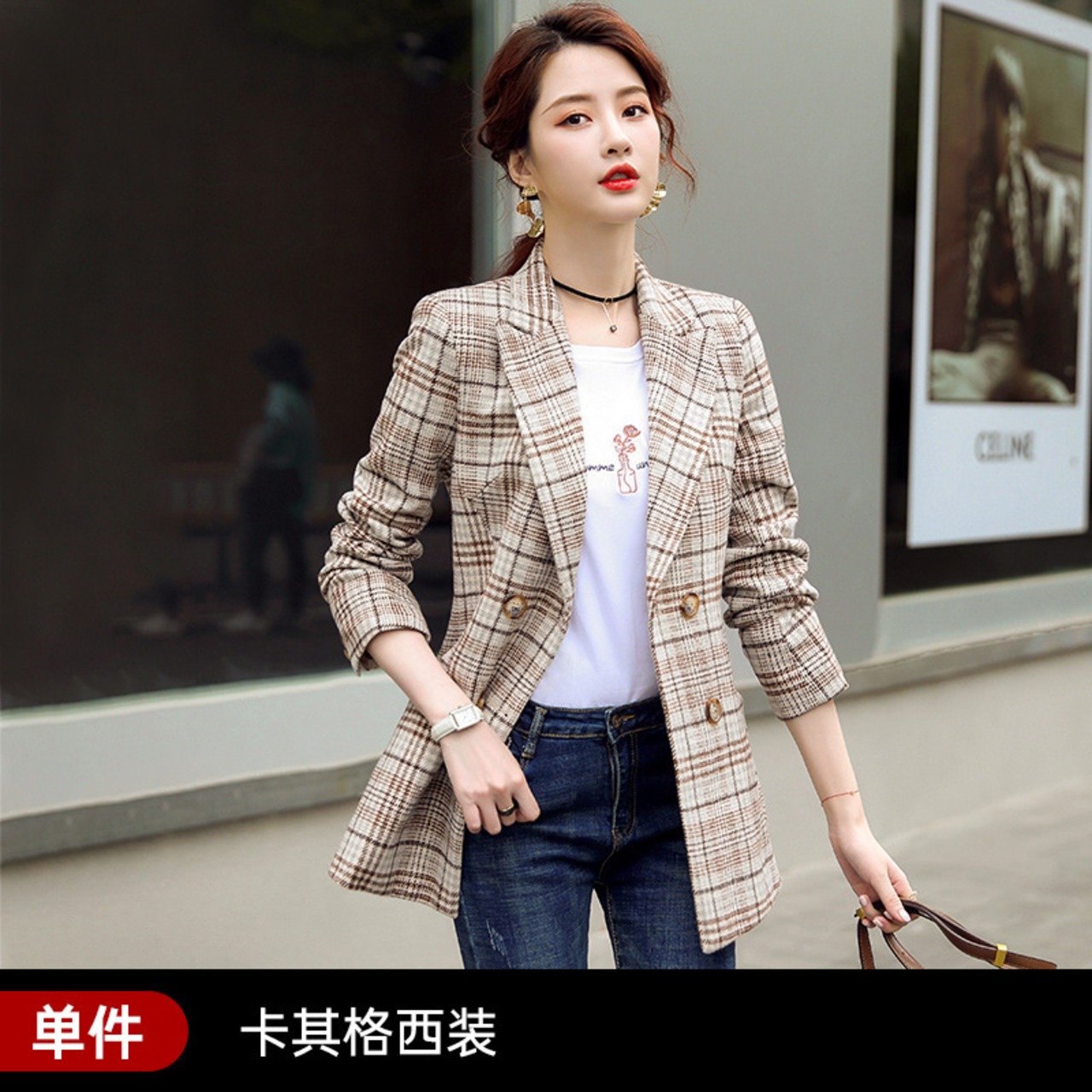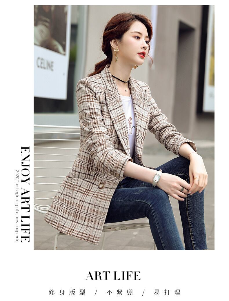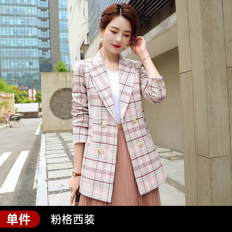 【新作】【送料無料】 ピンクの格子縞のロングスーツ2020秋の新しい女性の年齢削減の女神ファンYangqi小さなスーツのプロのジャケット-アリババ オータム 秋物 12b372893630977