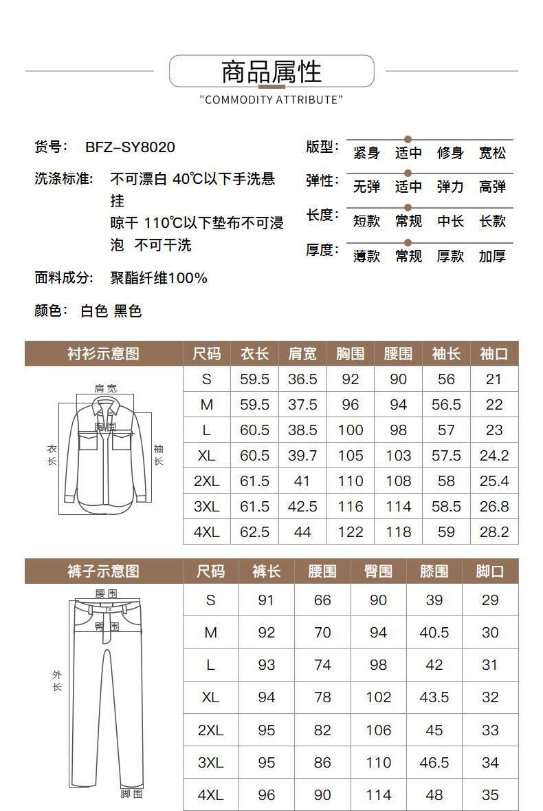 色:SY8020ホワイトシャツ(ワンピース),SY8020ブラックシャツ(ワンピース),SY8020白シャツ+B015黒パンツツーピーススーツ,SY8020黒シャツ+B016黒パンツツーピーススーツ