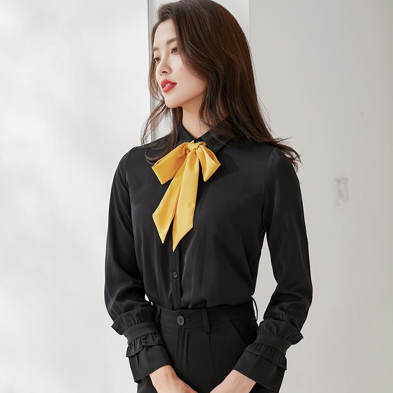 【新作】【送料無料】 対照的なリボンブラックシャツレディースプロウェアルーズシャツ2020春と秋の新しい長袖レトロシャツ-アリババ ロング スプリング 春物 オータム 秋物 12b398177443473