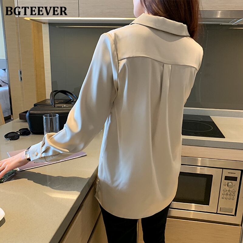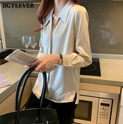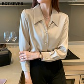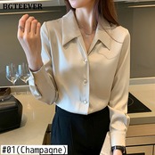 【新作】【送料無料】 BGTEEVERシックなオフィスウェアVネックルースウィミンシャツ2021春長袖ソリッドサテンブラウス ロング スプリング 春物 ソリッドカラー 会社 学校 通勤や通学にも 12b16519714761