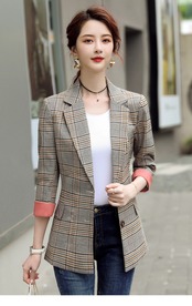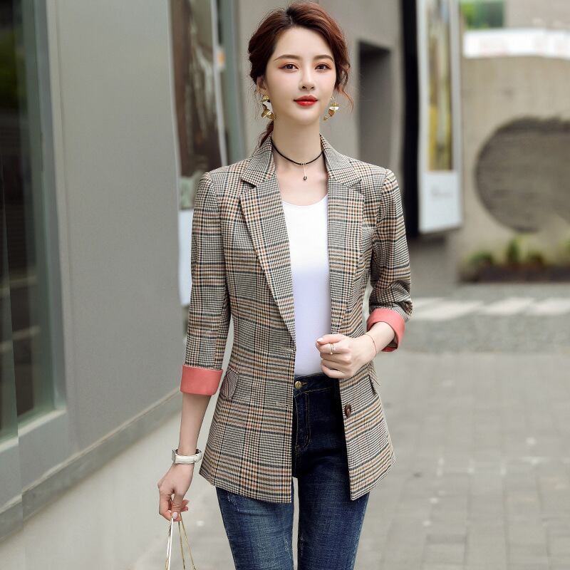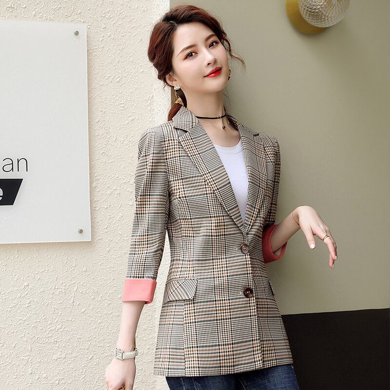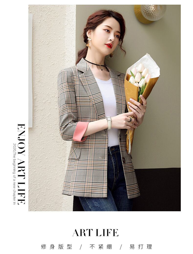 【新作】【送料無料】 2020年秋新しいコントラストカラーカフス年齢を減らす小さなスーツの女性の千鳥格子チェックレトロスタイルのネットレッドプロフェッショナルジャケット-アリババ 12b394161296997