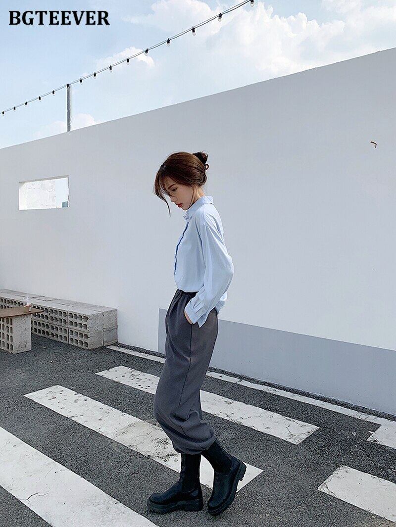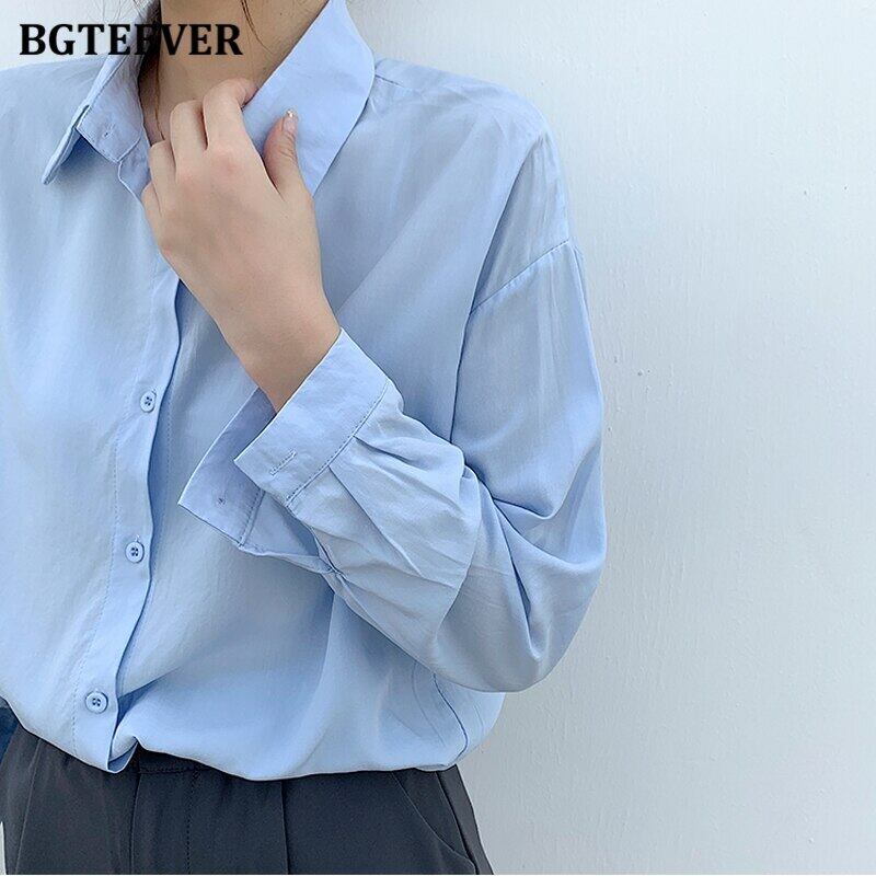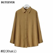 【新作】【送料無料】 BGTEEVERシックなシングルブレストルーズシャツトップスラペル長袖ブラウス2021春の女性ソリッドシャツ ロング スプリング 春物 ソリッドカラー 12b186042054341