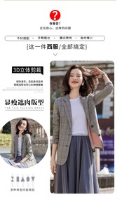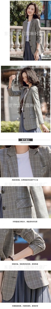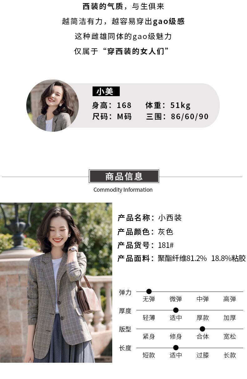 【新作】【送料無料】 グレーチェック柄ロングスモールスーツジャケット2020秋冬新作レディースファッションプロレトロスタイルスーツジャケット-アリババ オータム 秋物 ウィンター 冬物 12b390485452900