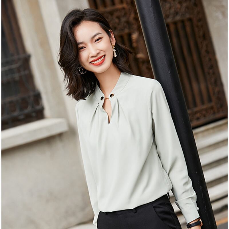 【新作】【送料無料】 2020年秋の新デザインセンスニッチ長袖シャツレディースプロホワイトカラー大学生インタビュー作業着-アリババ ロング オータム 秋物 12b385699528046