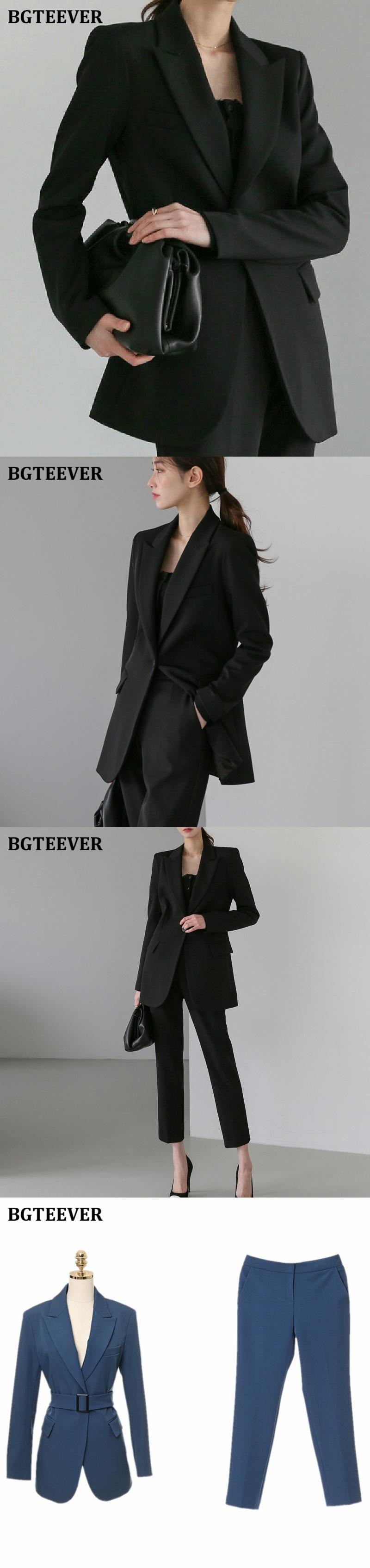 【新作】【送料無料】 BGTEEVERオフィスパンツスーツレディースシングルボタンスリムベルトブレザー&スーツパンツスプリング2点セット 春物 ハーネス 会社 学校 通勤や通学にも 12b189697431022