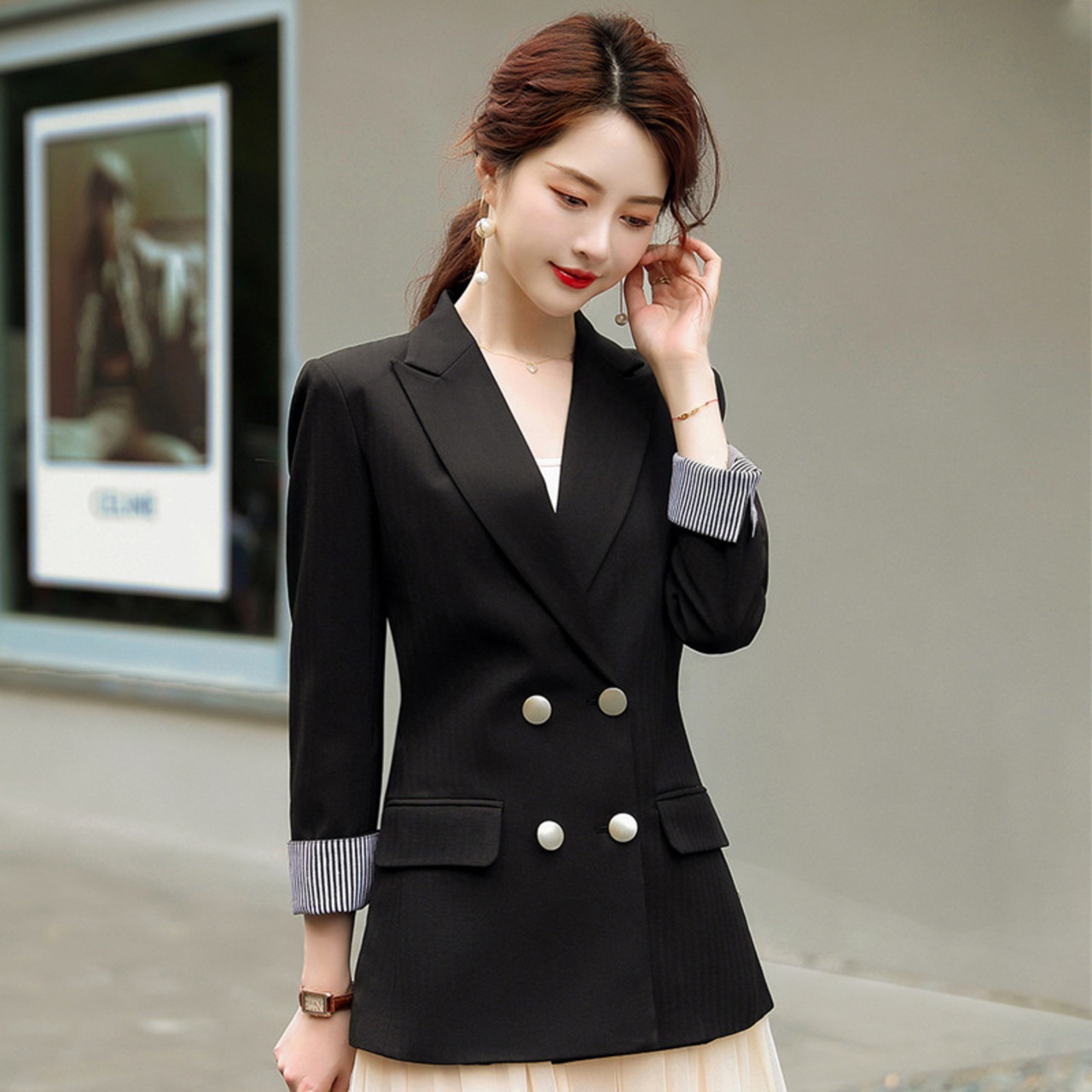 【新作】【送料無料】 ダブルブレストスーツのバージョン2020秋新しい女性の黒のロングコートプロのレトロネット赤の小さなスーツ-アリババ レッド ブラック オータム 秋物 12b368527017158