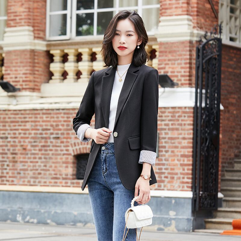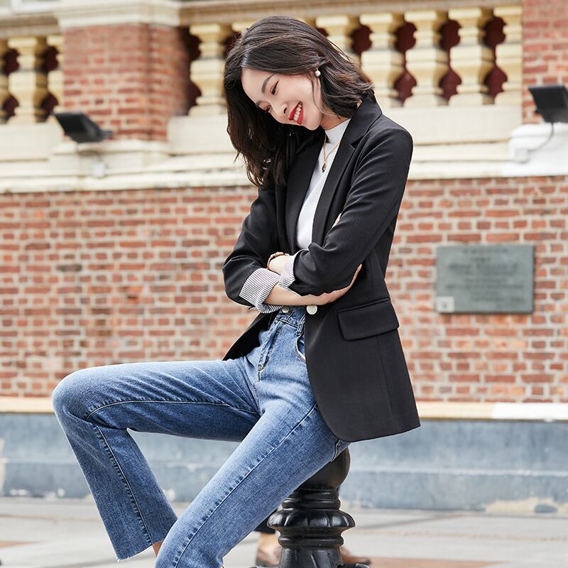【新作】【送料無料】 黒の長袖の小さなスーツジャケット2020年秋の新しい婦人服はネットの赤いヘップバーンスタイルのロングスーツの薄いバージョンに見えます-アリババ レッド ブラック オータム 秋物 12b366549389039