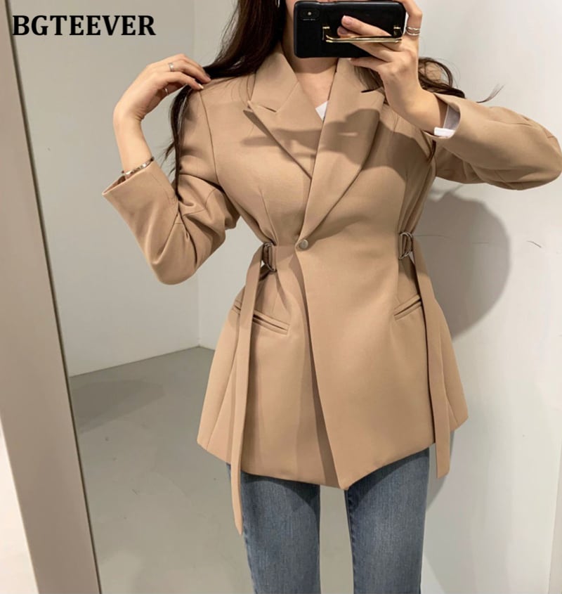 【新作】【送料無料】 BGTEEVERファションシックなレースアップ女性スリムウエストソリッドブレザーオフィスウェアシングルボタンスーツジャケット2021春 スプリング 春物 ソリッドカラー 会社 学校 通勤や通学にも 12b15161082505