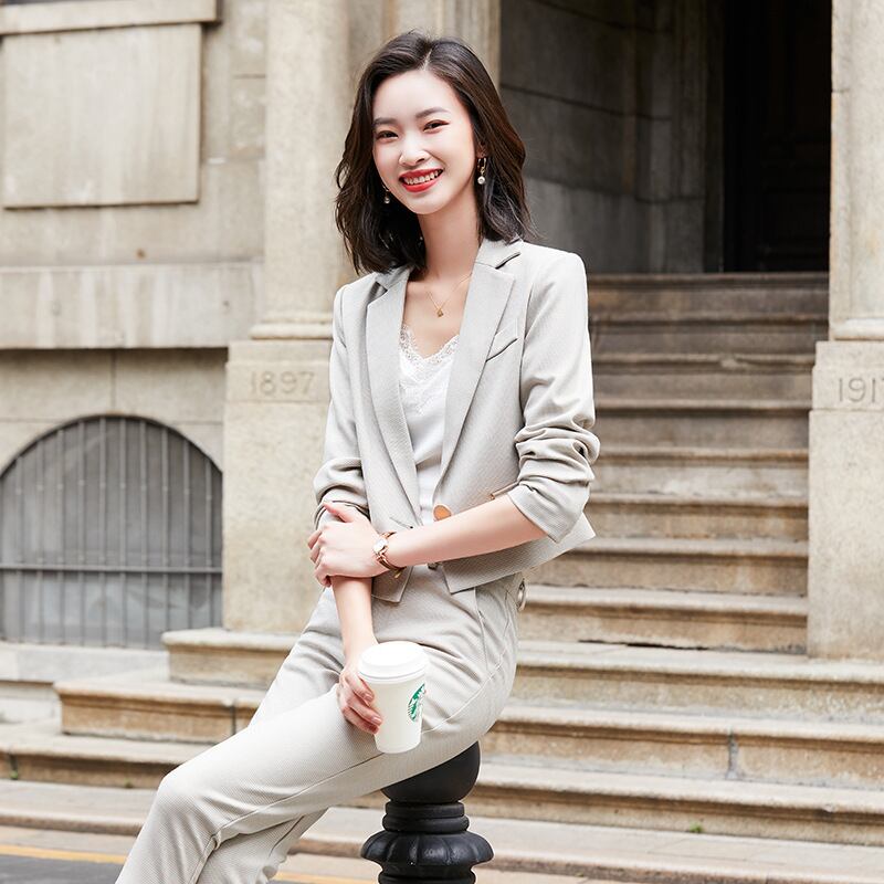 【新作】【送料無料】 センスニッチショートスーツジャケット、9ポイントパンツツーピーススーツレディース2020秋新プロウェア-アリババ オータム 秋物 12b390232072394