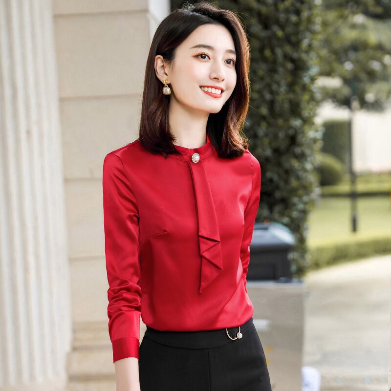 【新作】【送料無料】 2020年秋の新しいデザインセンスニッチ気質シャツ女性ラウンドネックプルオーバー長袖レディーススタイルトップ-アリババ ロング オータム 秋物 Oネック 12b316236095077