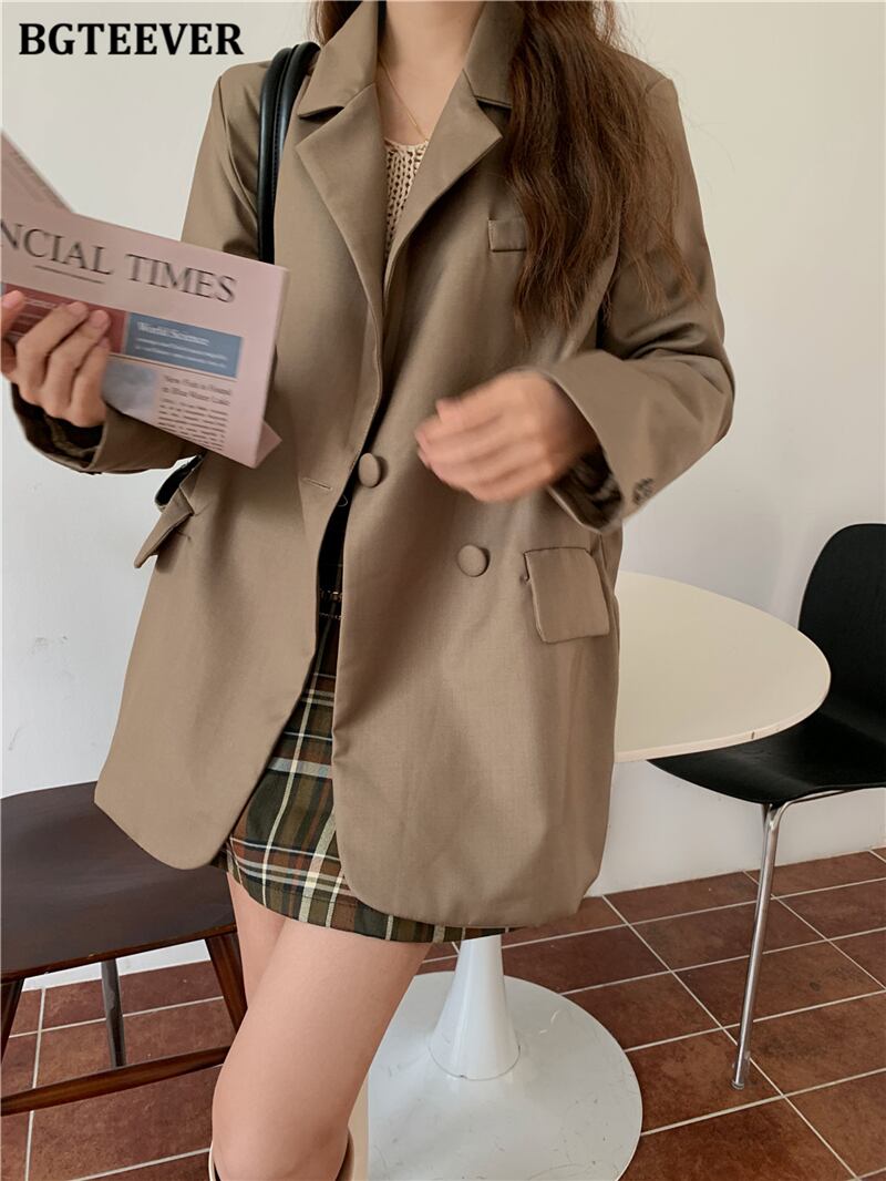 【新作】【送料無料】 BGTEEVERシックなノッチカラーダブルブレストミントグリーンレディースブレイザー2021ルーズスーツジャケット春のアウター スプリング 春物 12b159866920271